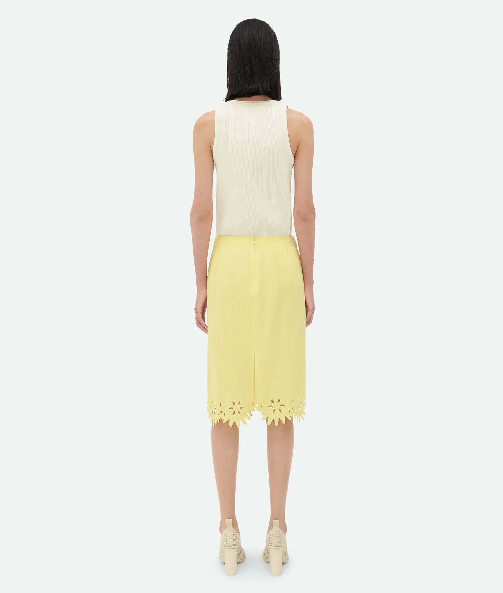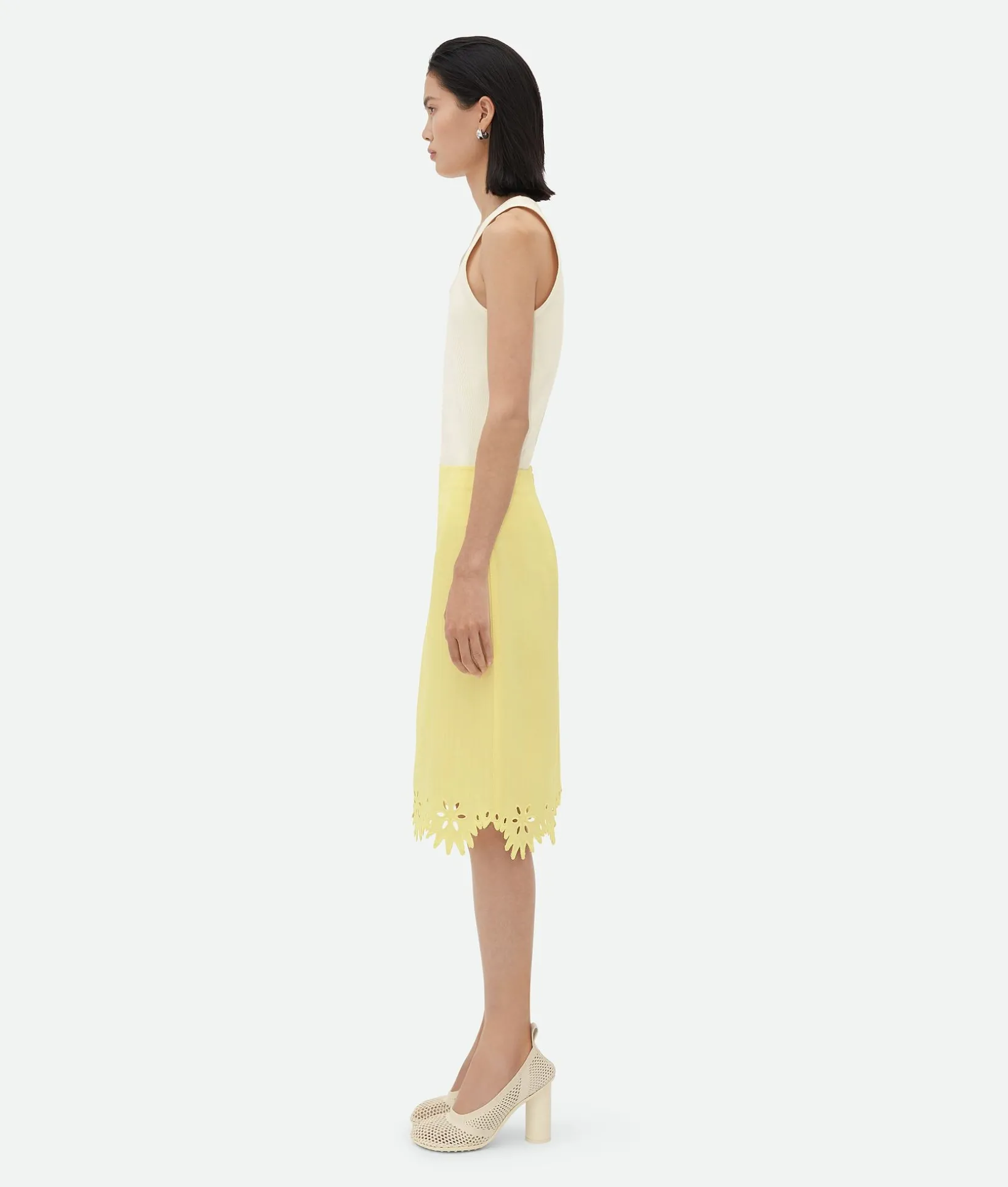 • English embroidery grainy viscose and silk midi skirt