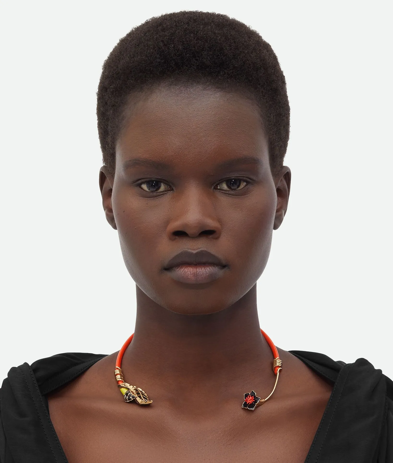 • 18k gold-finish sterling silver rigid open necklace