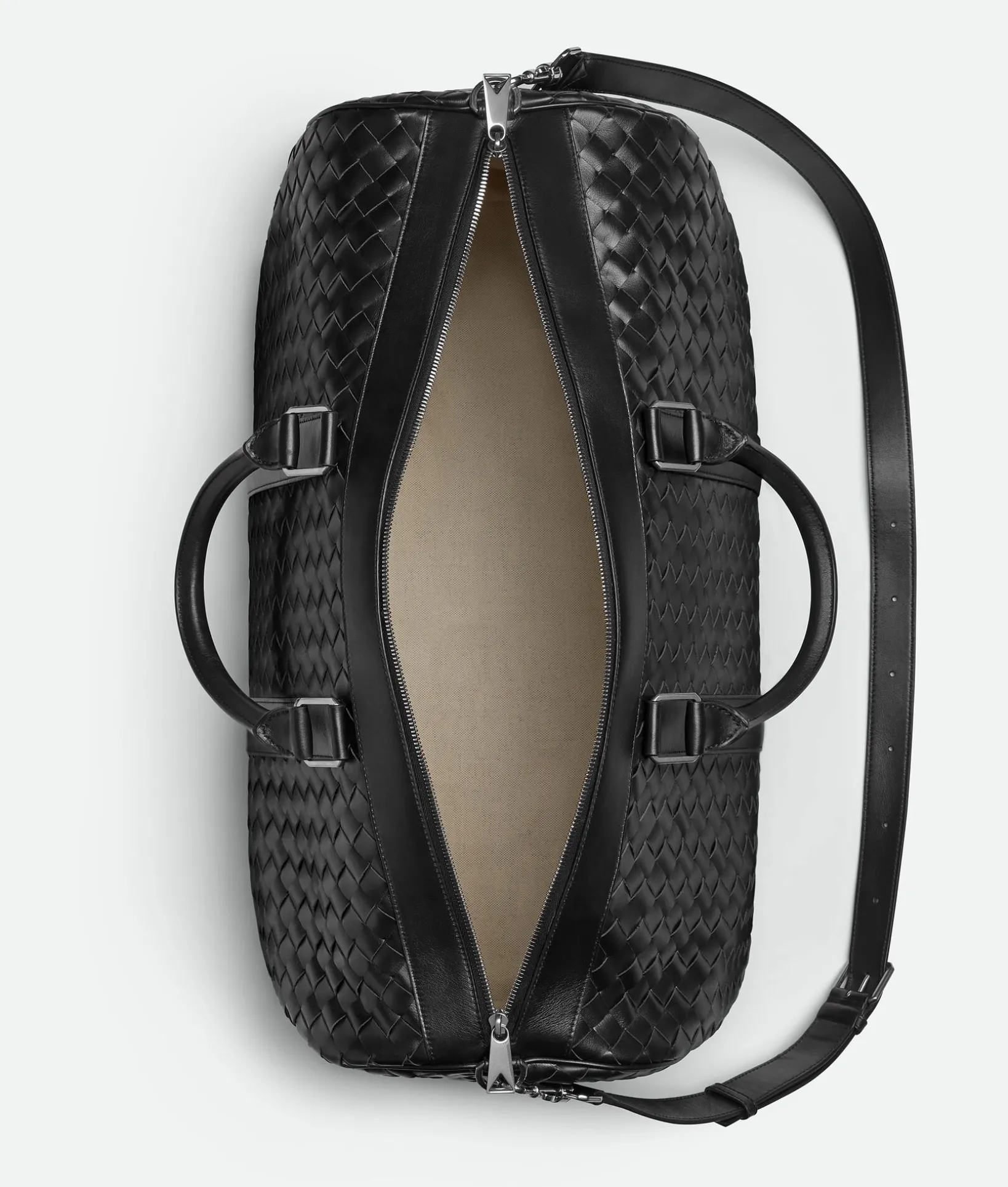 • Intrecciato leather duffle bag with detachable and adjustable strap