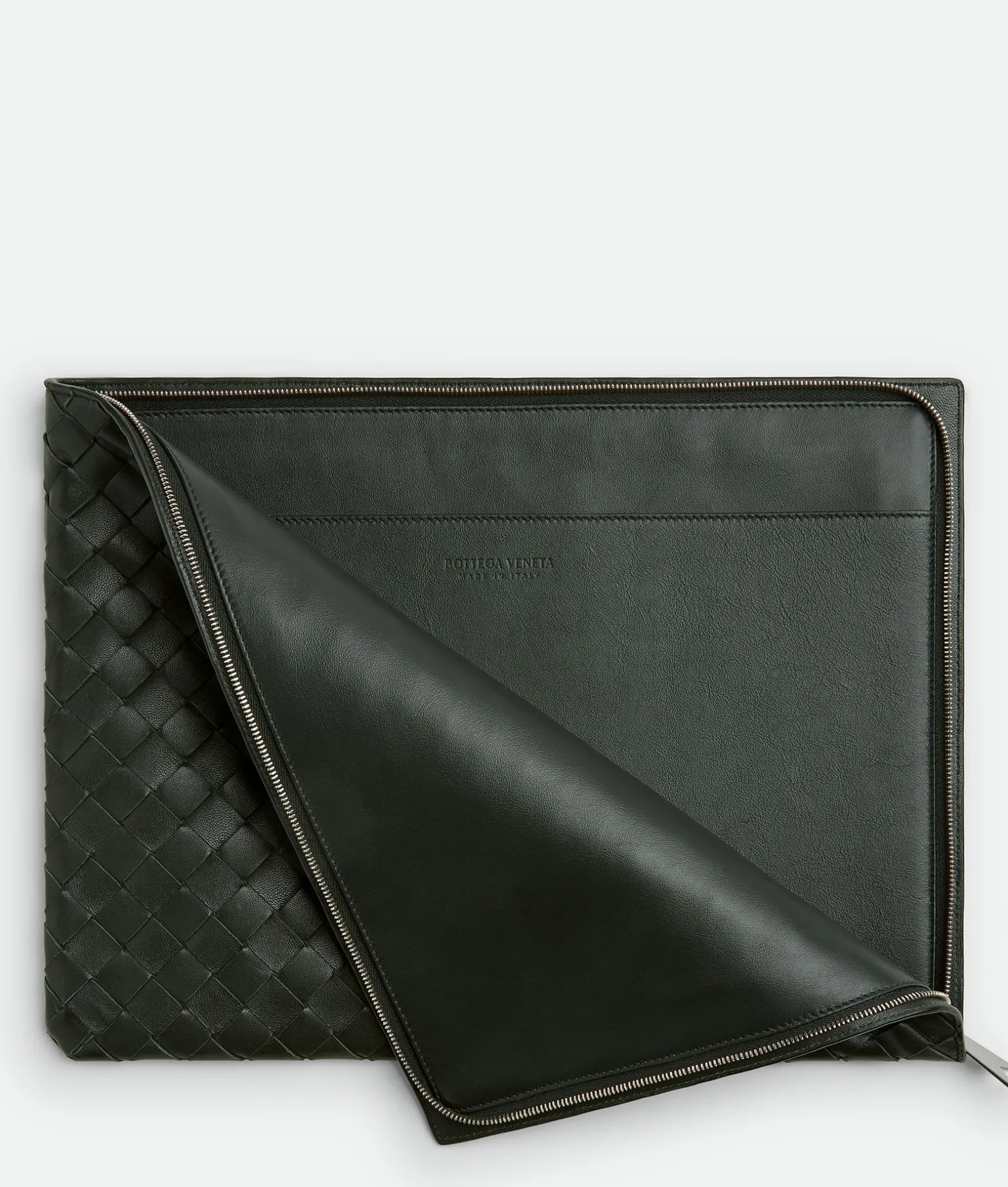 • Intrecciato leather pouch