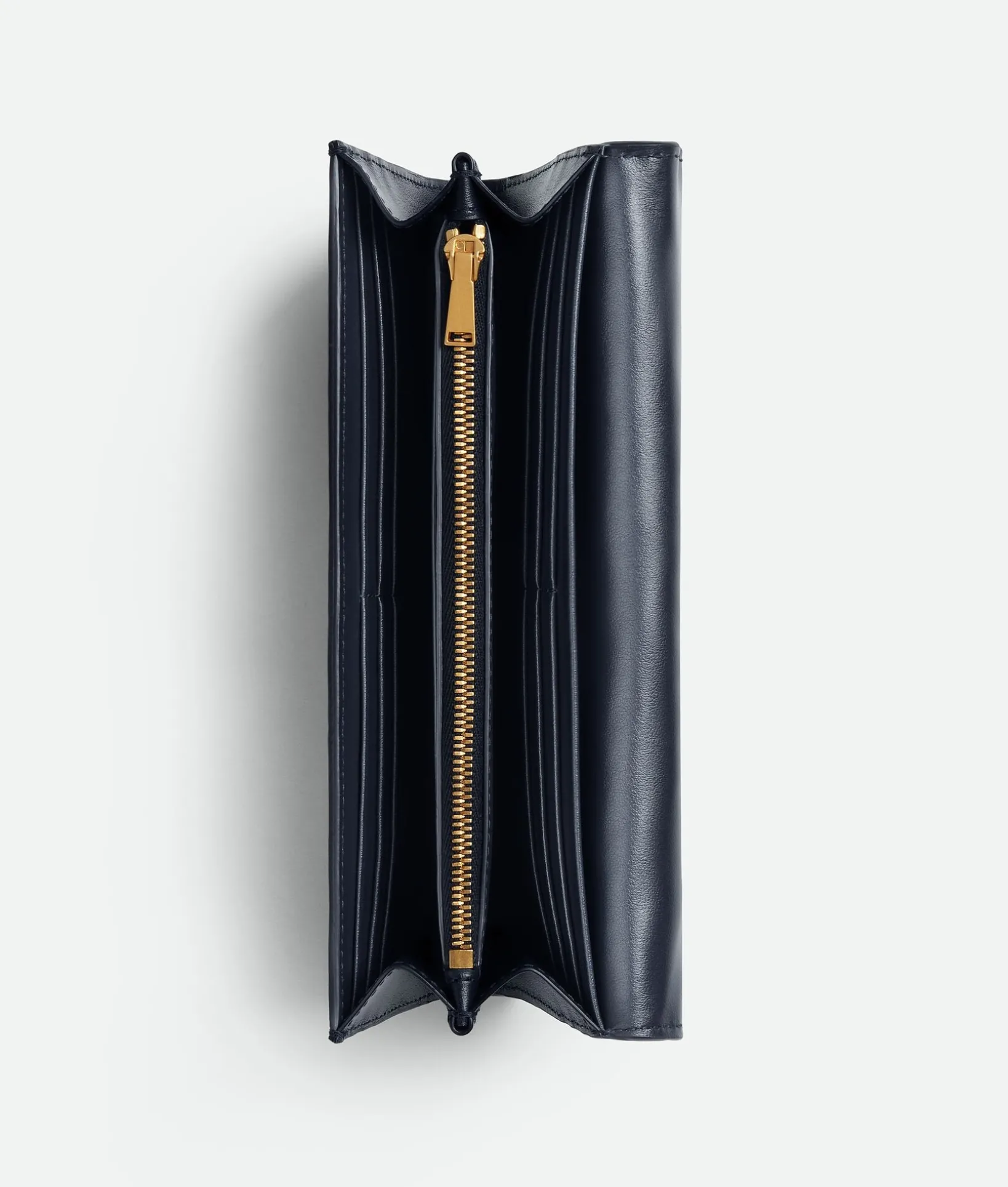 • Twelve card slots, two bill compartments, one additional pocket, one zipped coin purse