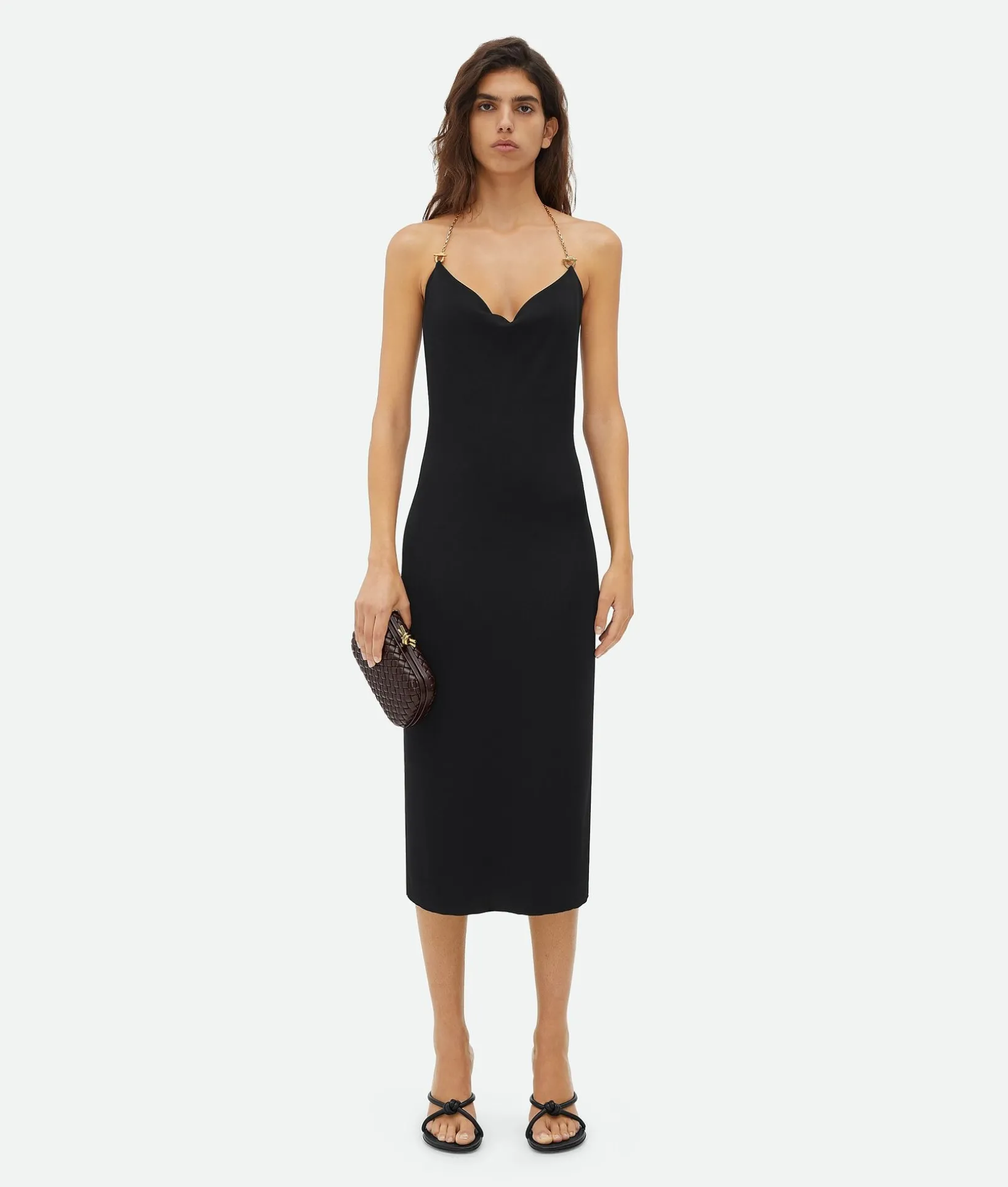 • Padded Intreccio leather minaudière with cross-body leather braided metal chain