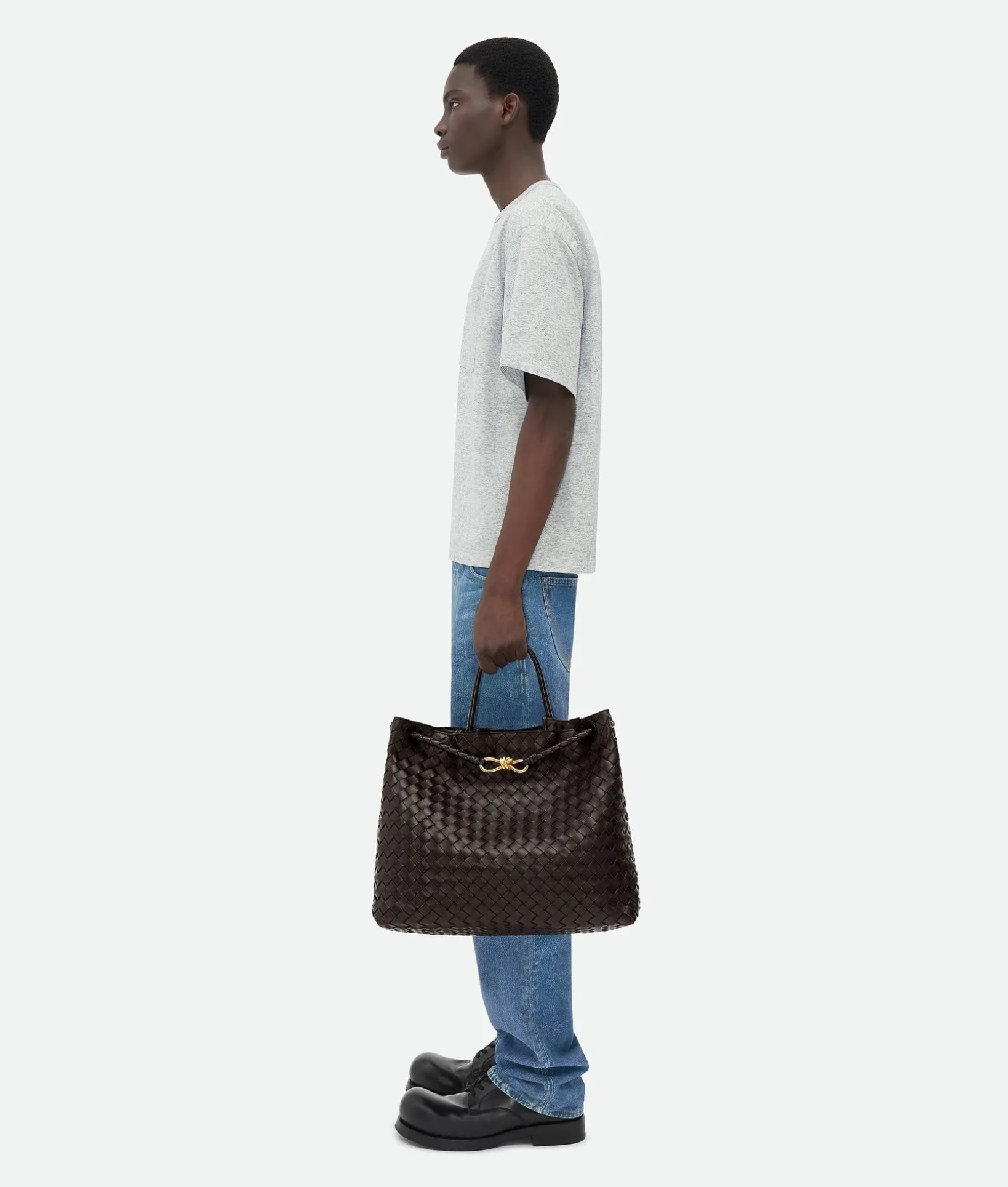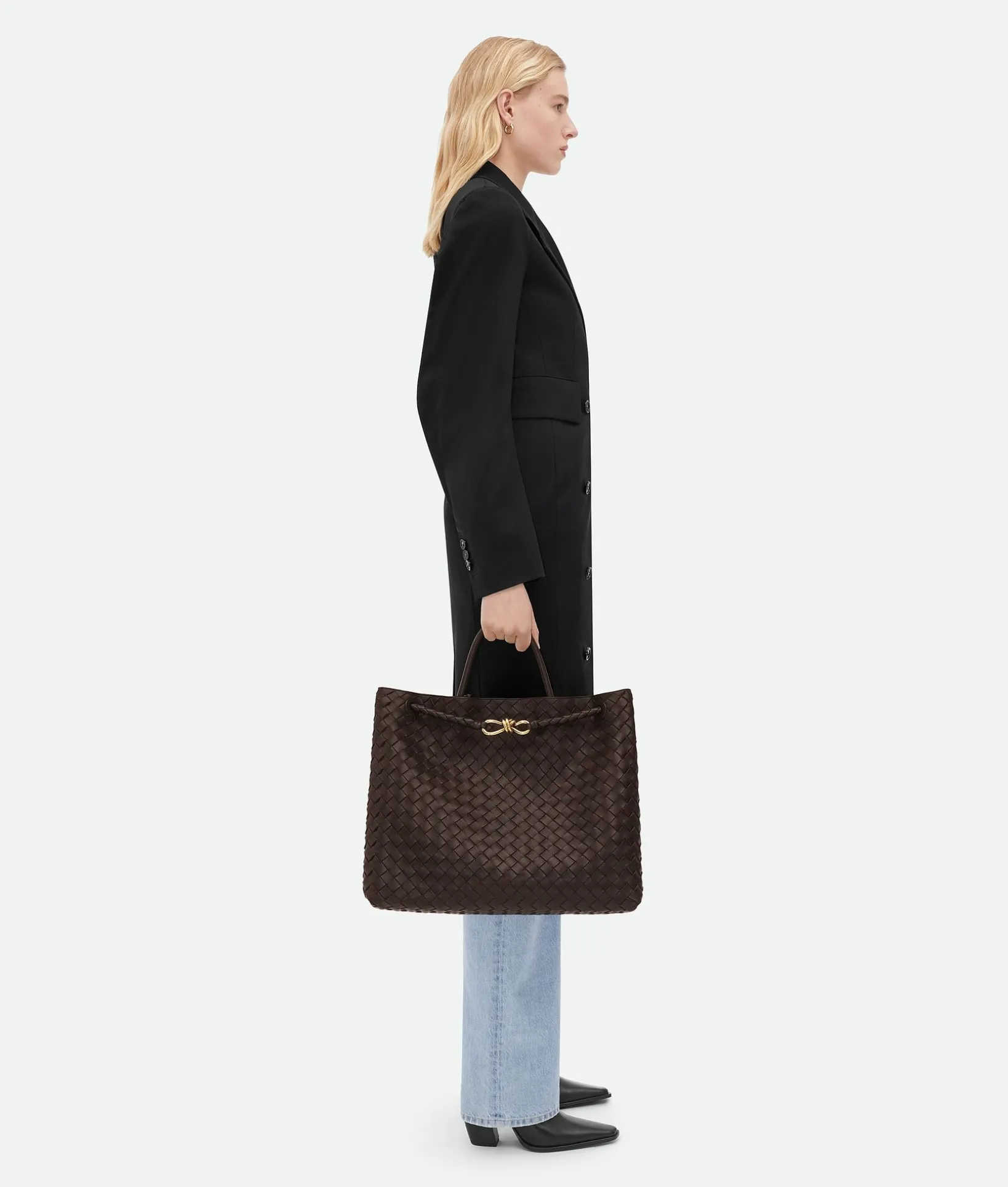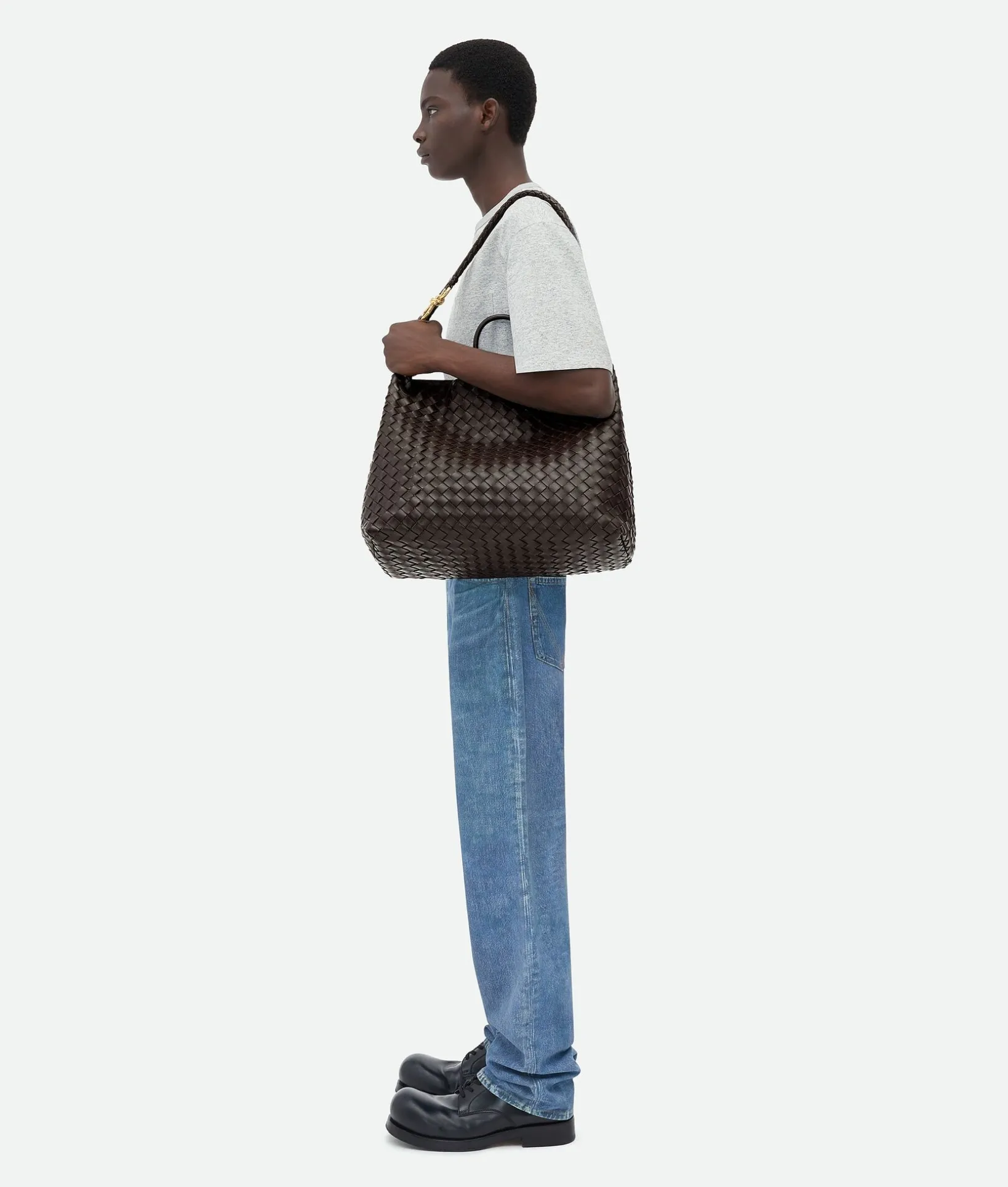 • Large Intrecciato leather top handle bag with sliding cross-body strap