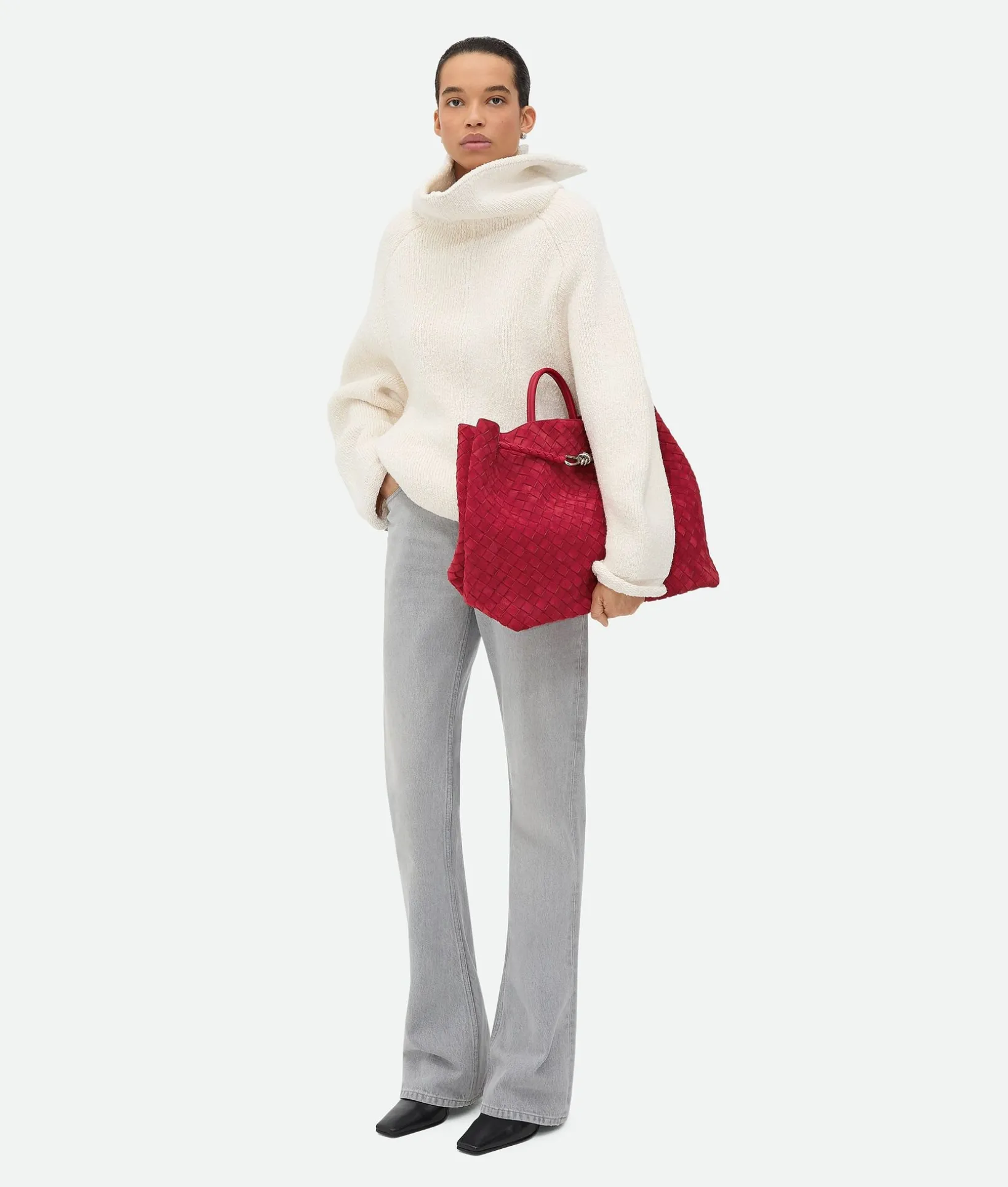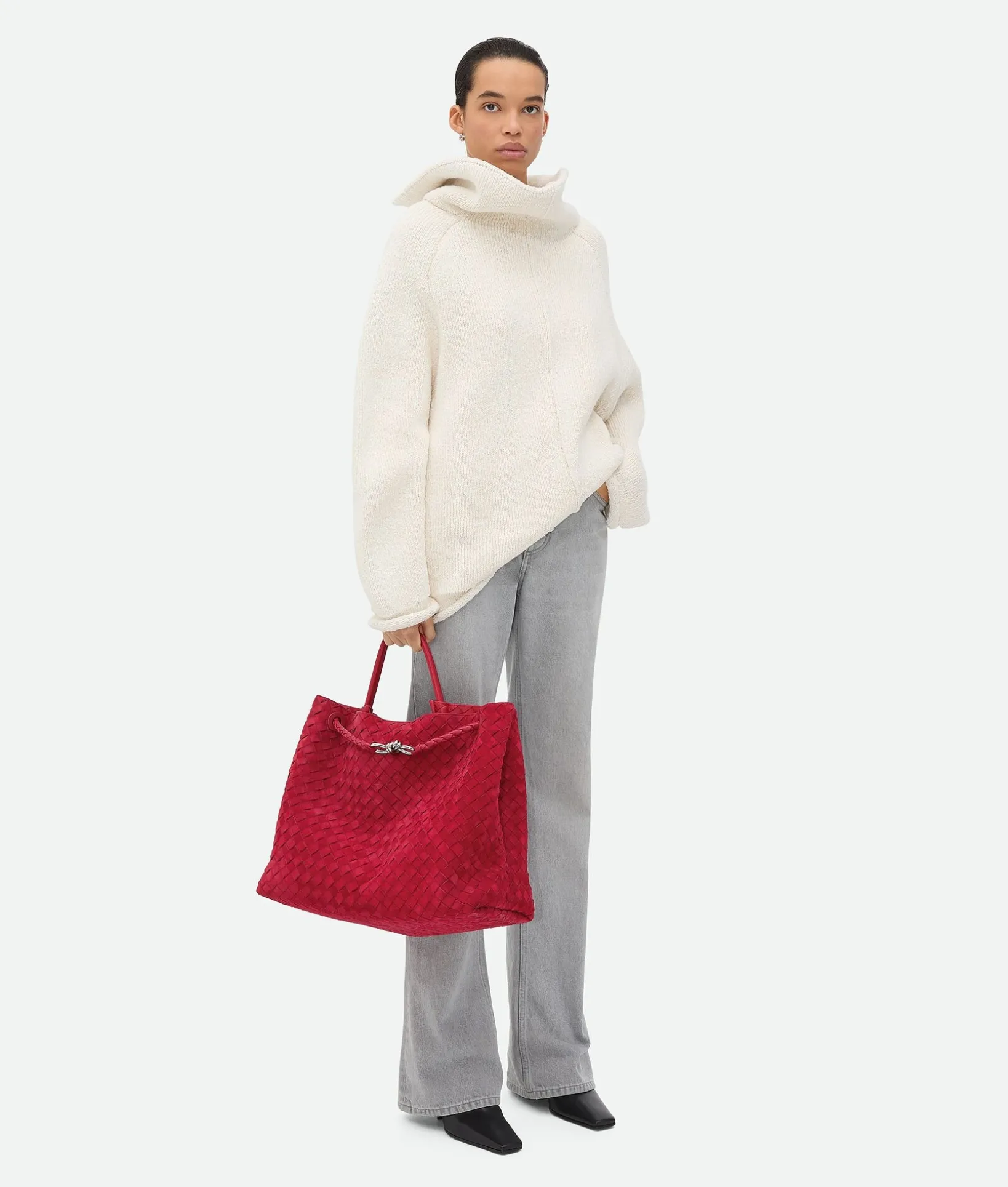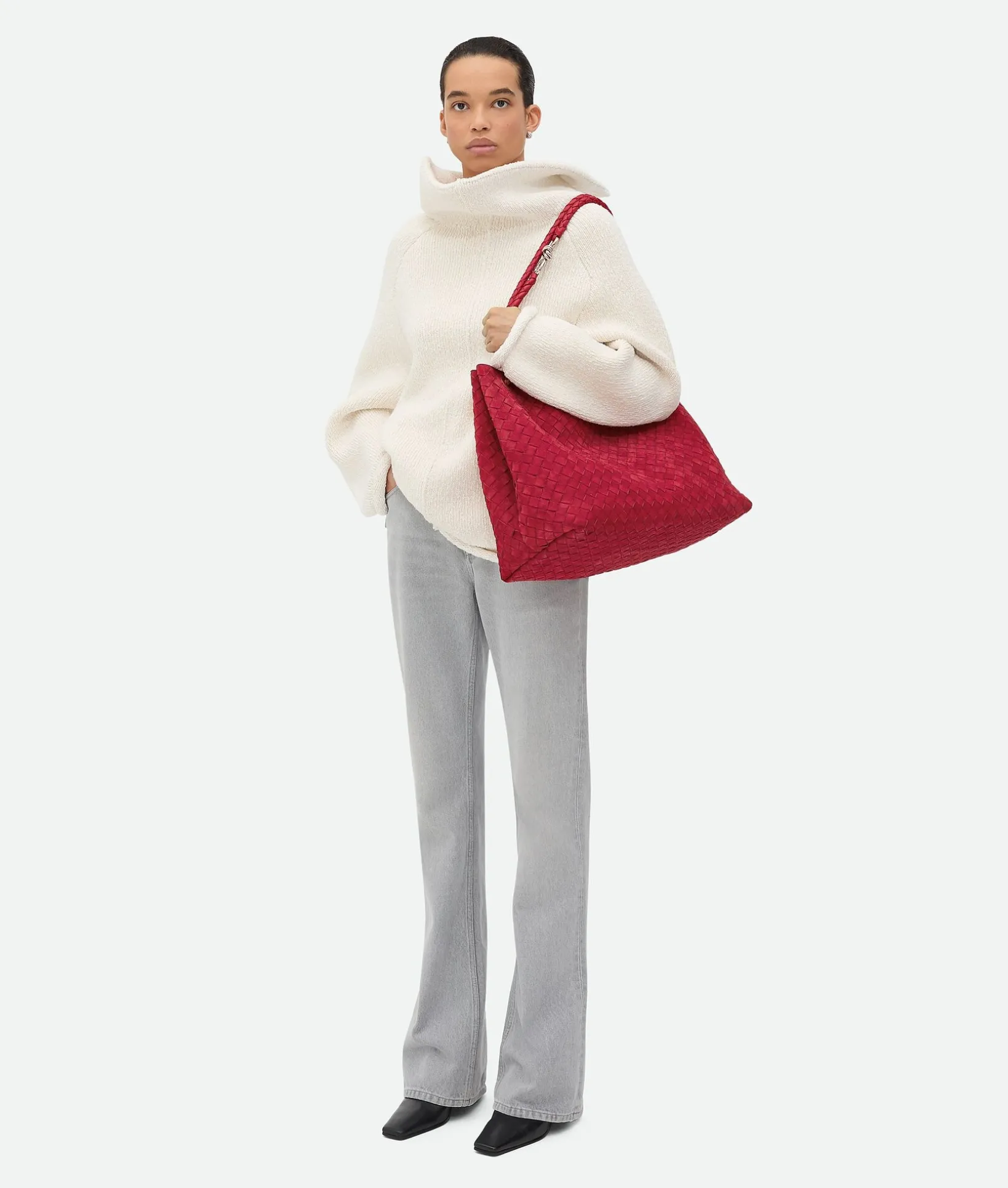 • Large Intrecciato suede top handle bag with sliding cross-body strap