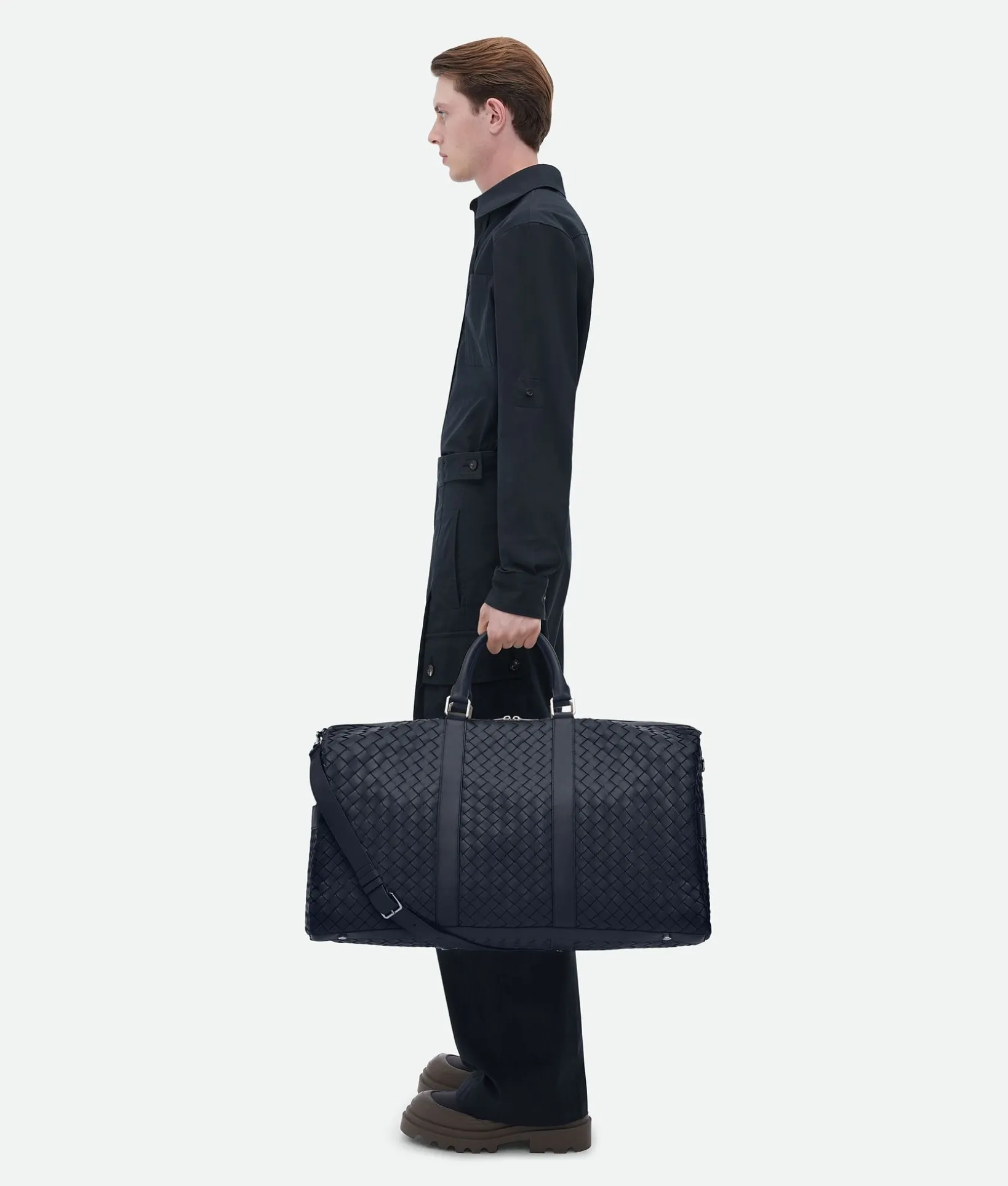 • Large intrecciato leather duffle bag with removable strap