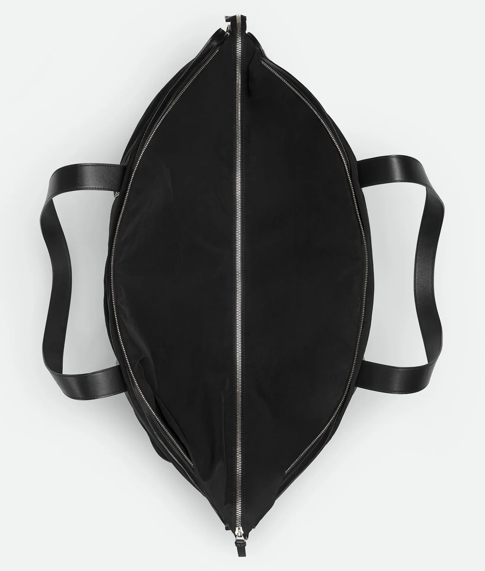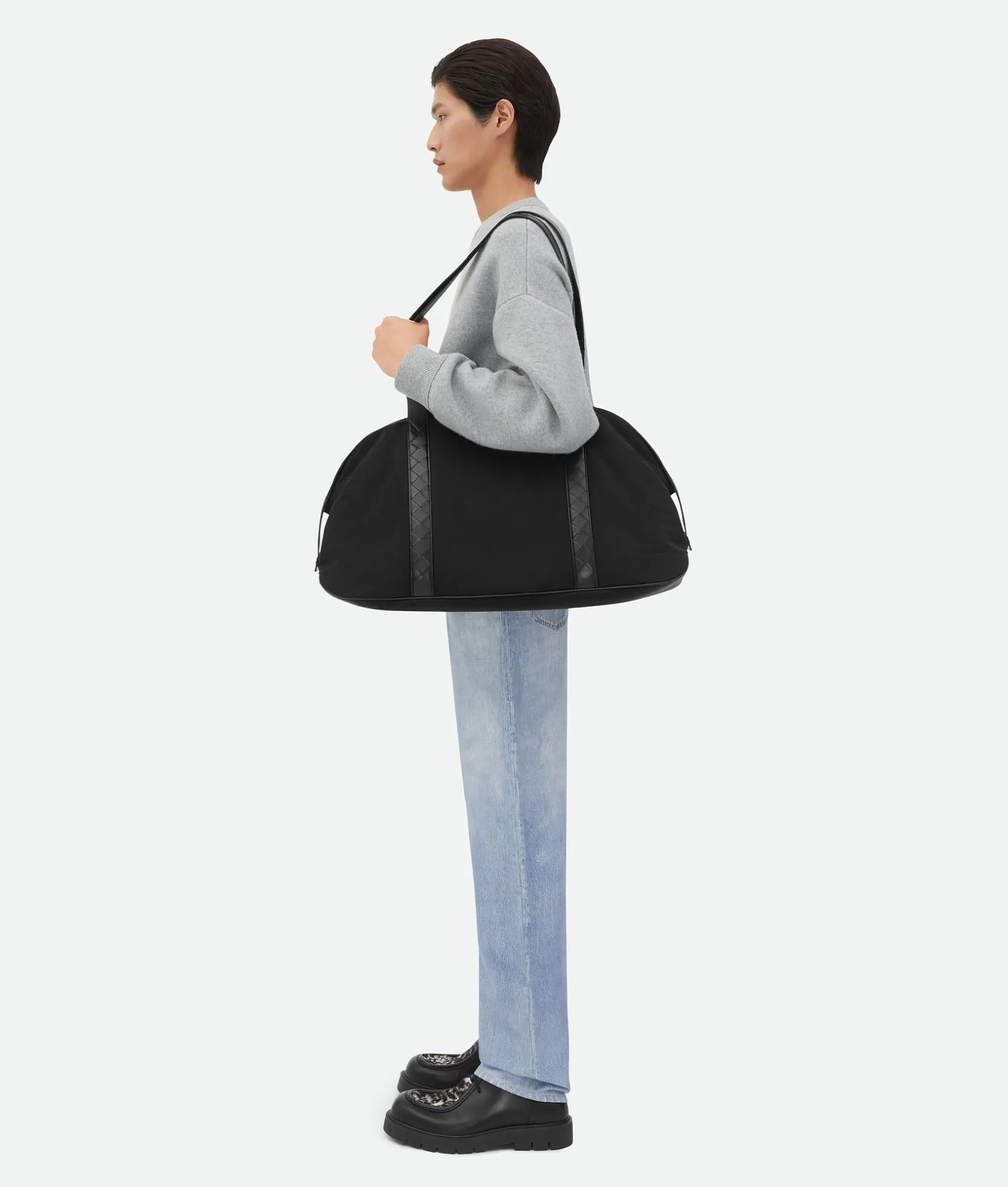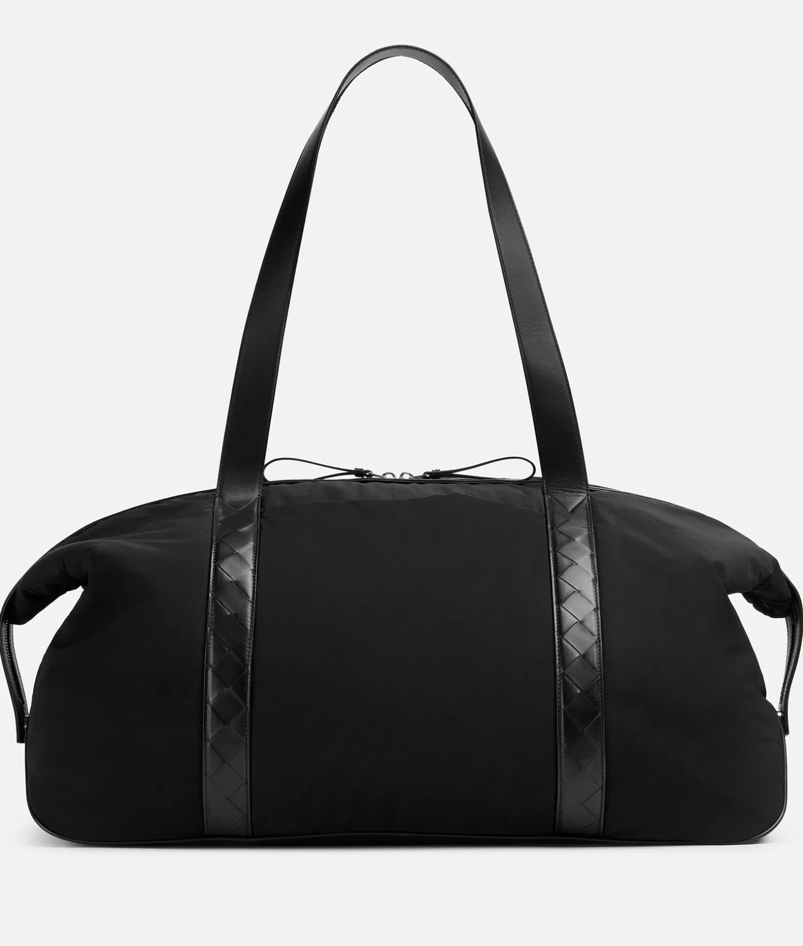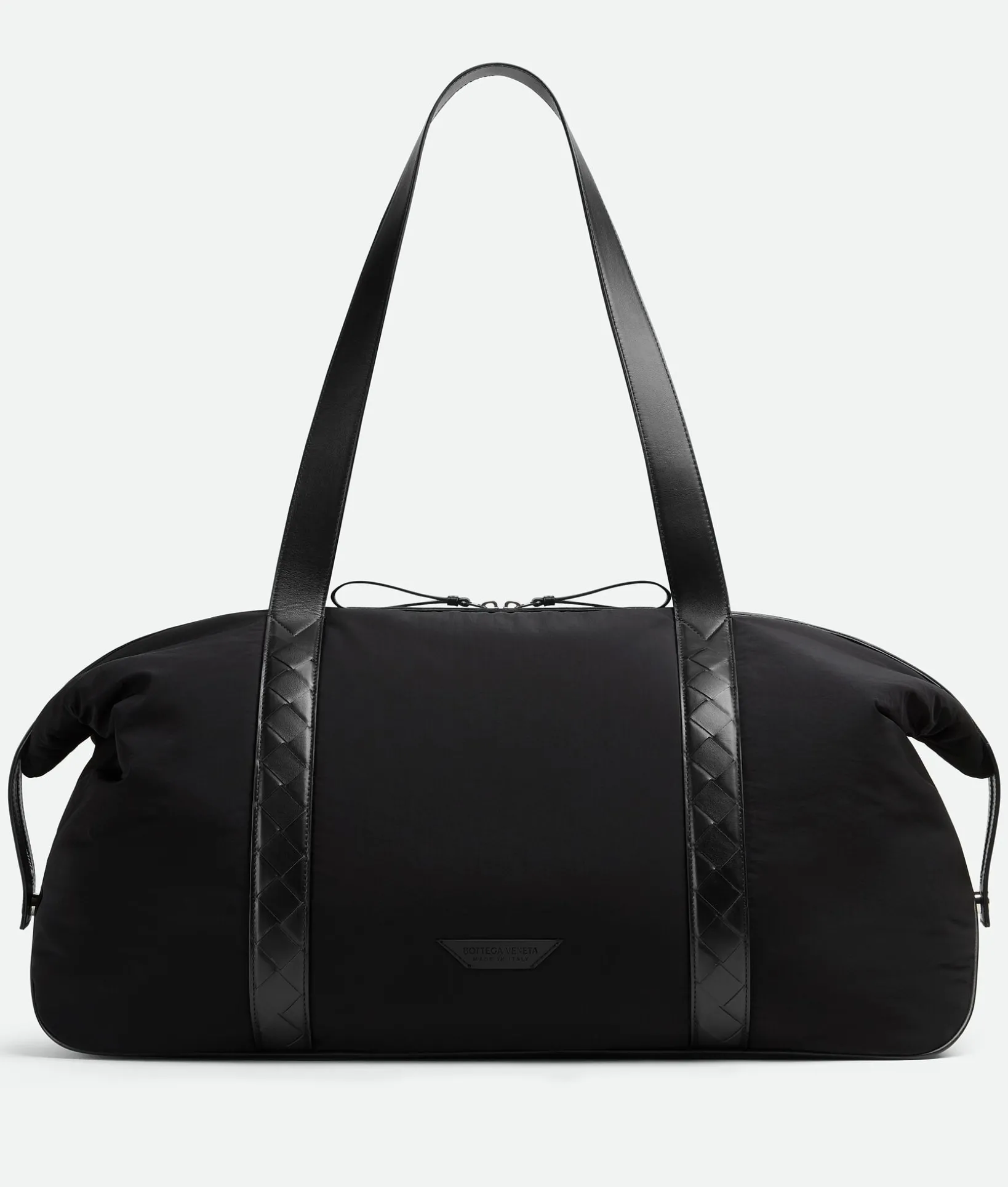 • Lightweight padded nylon duffle bag with classic Intrecciato leather handles