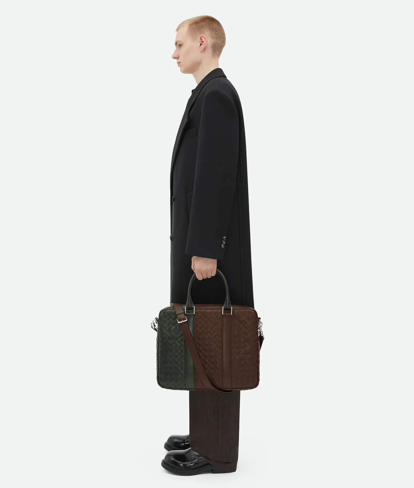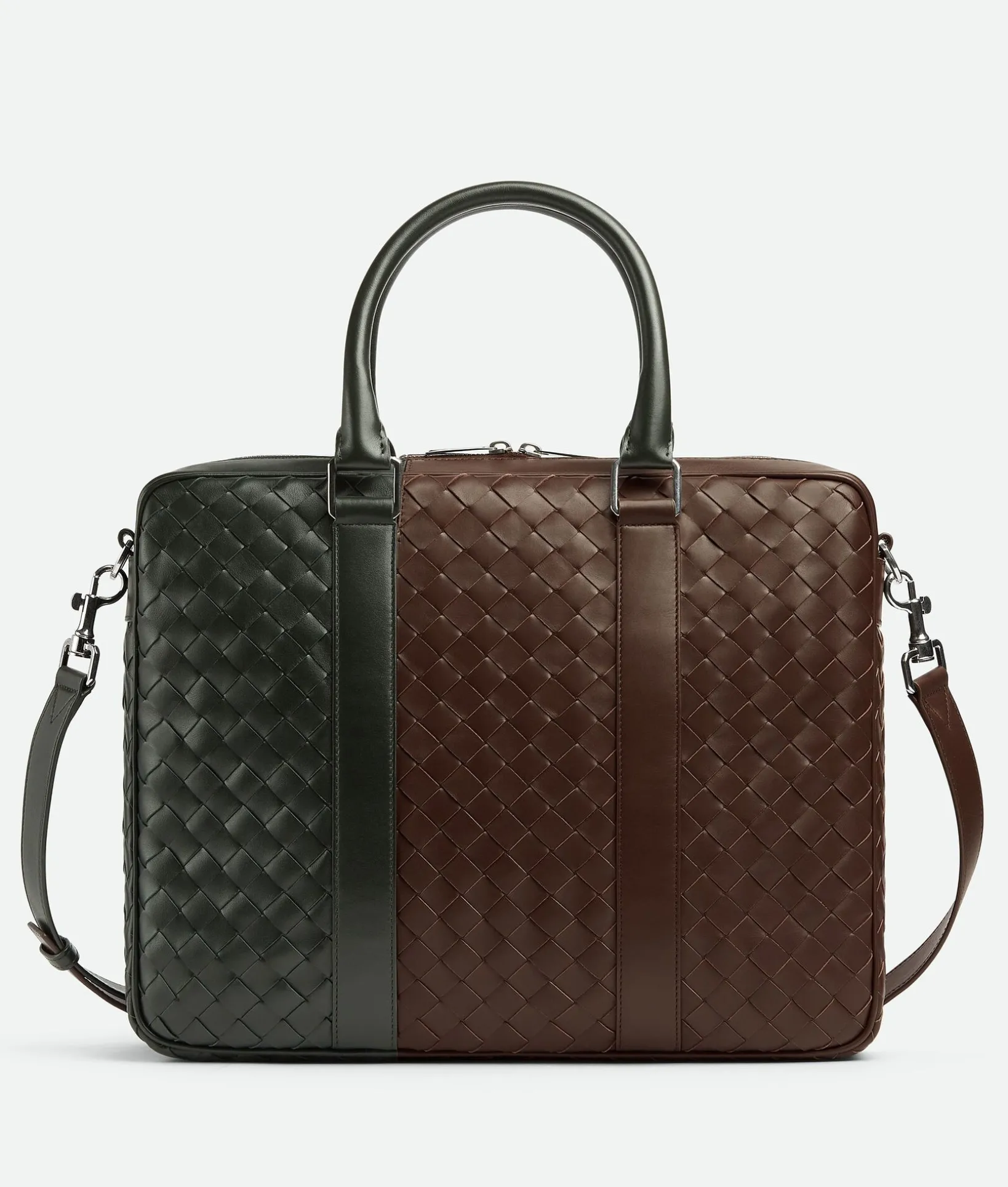 • Large Intrecciato leather briefcase with detachable strap and colorblock effect