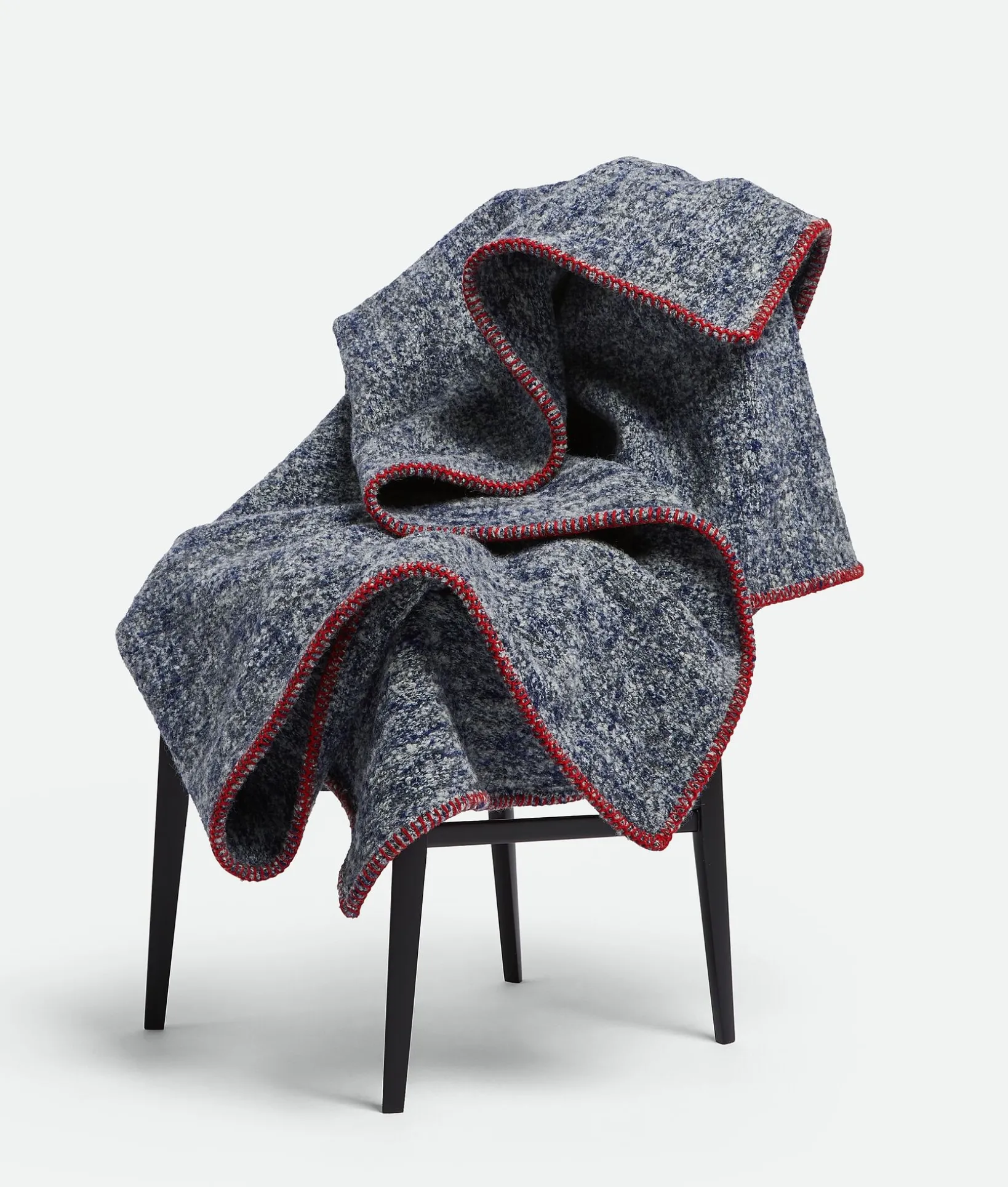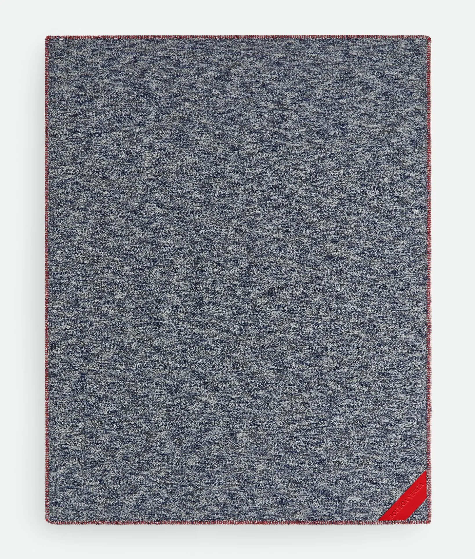 • Blanket in wool with calfskin leather patch and edge-stitching details.