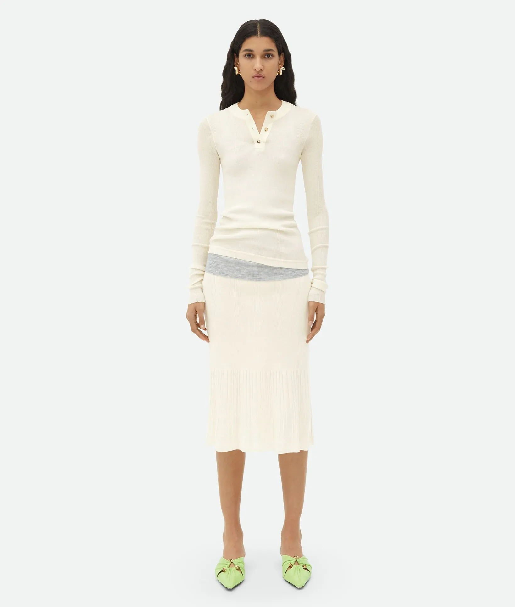 • Light wool ribbed midi skirt