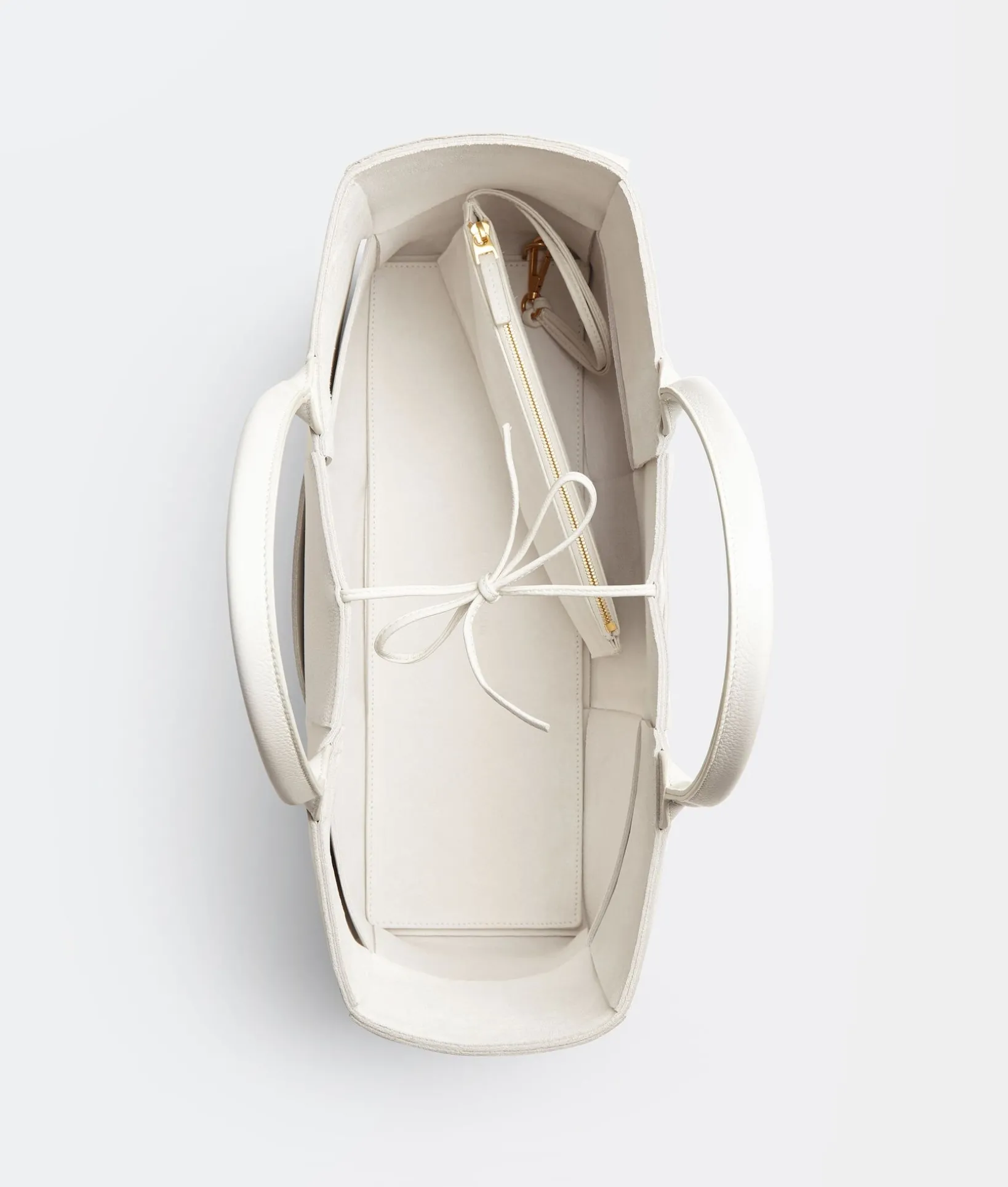 • Leather string closure
