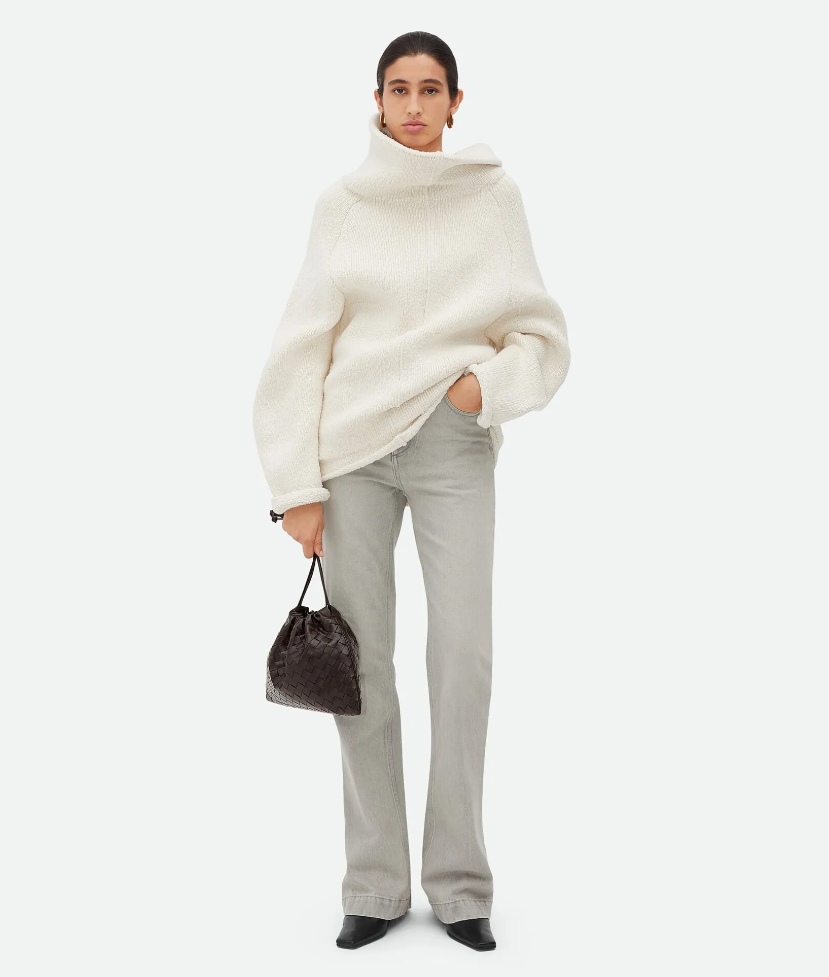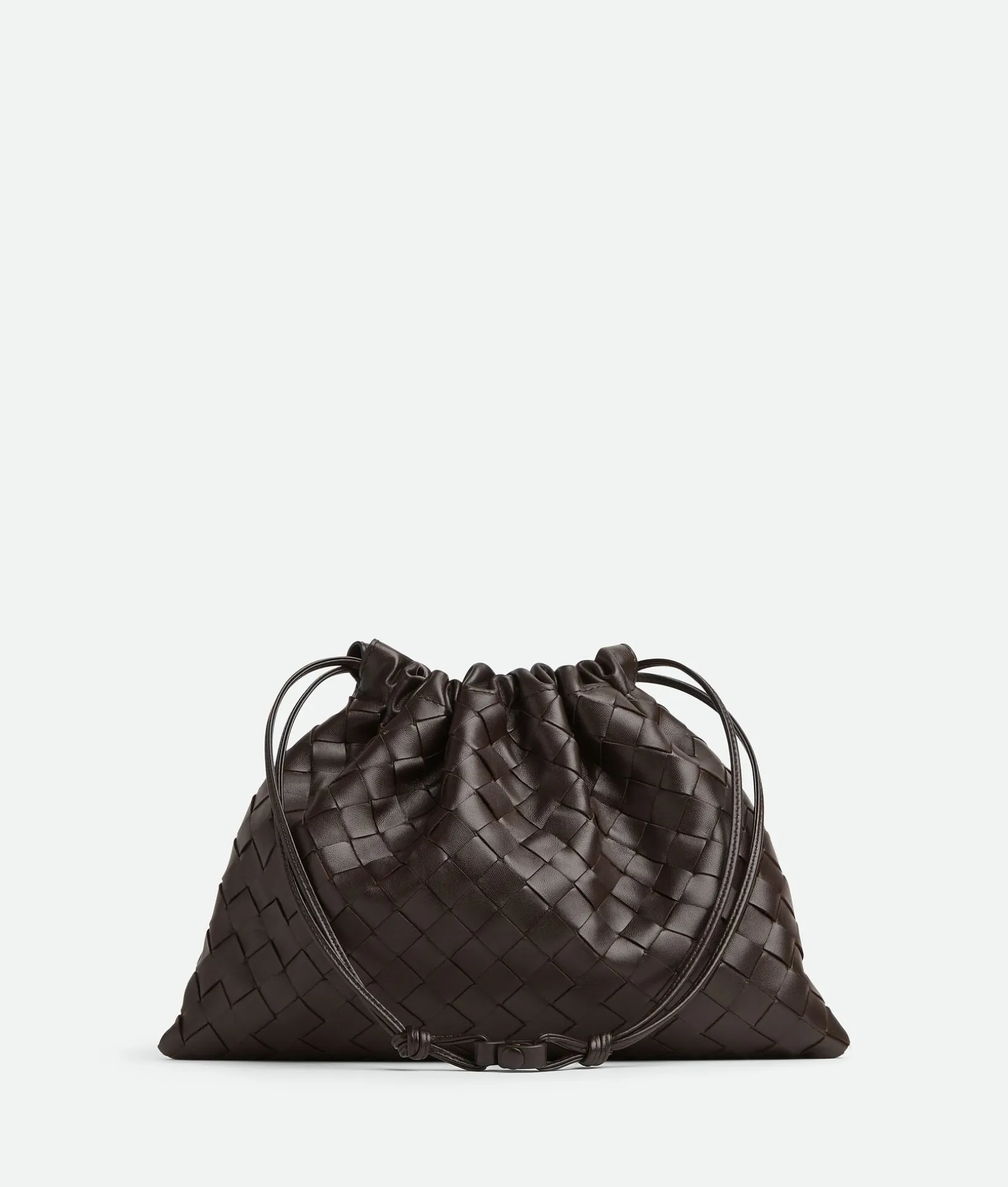 • Drawstring closure with leather loop attachment for shoulder carry