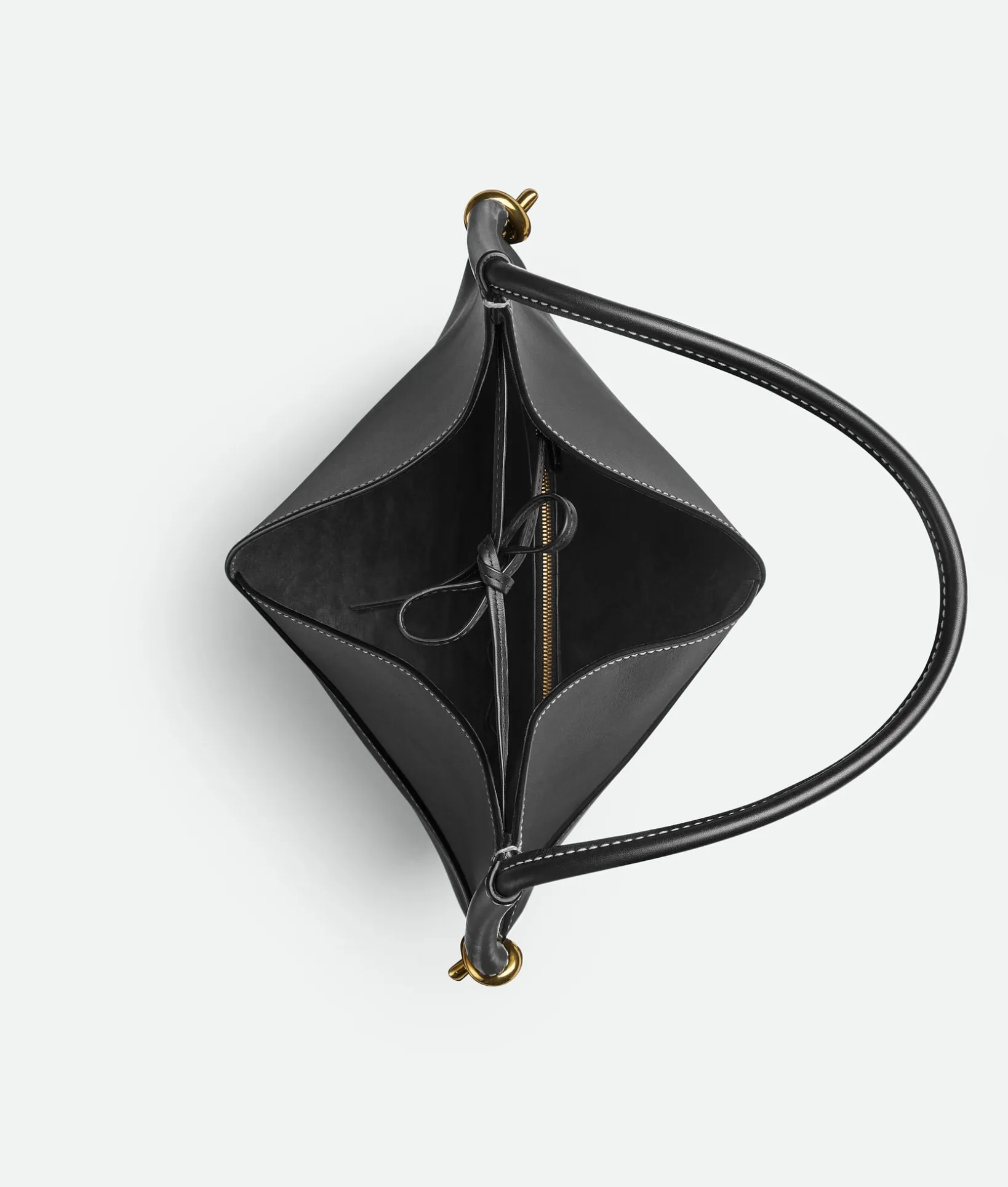 • Leather string closure