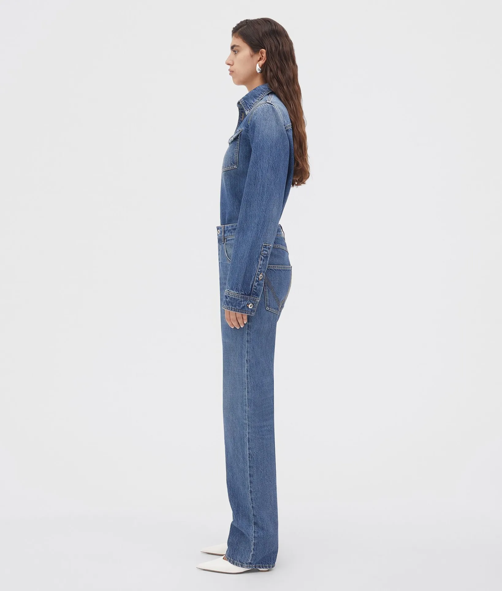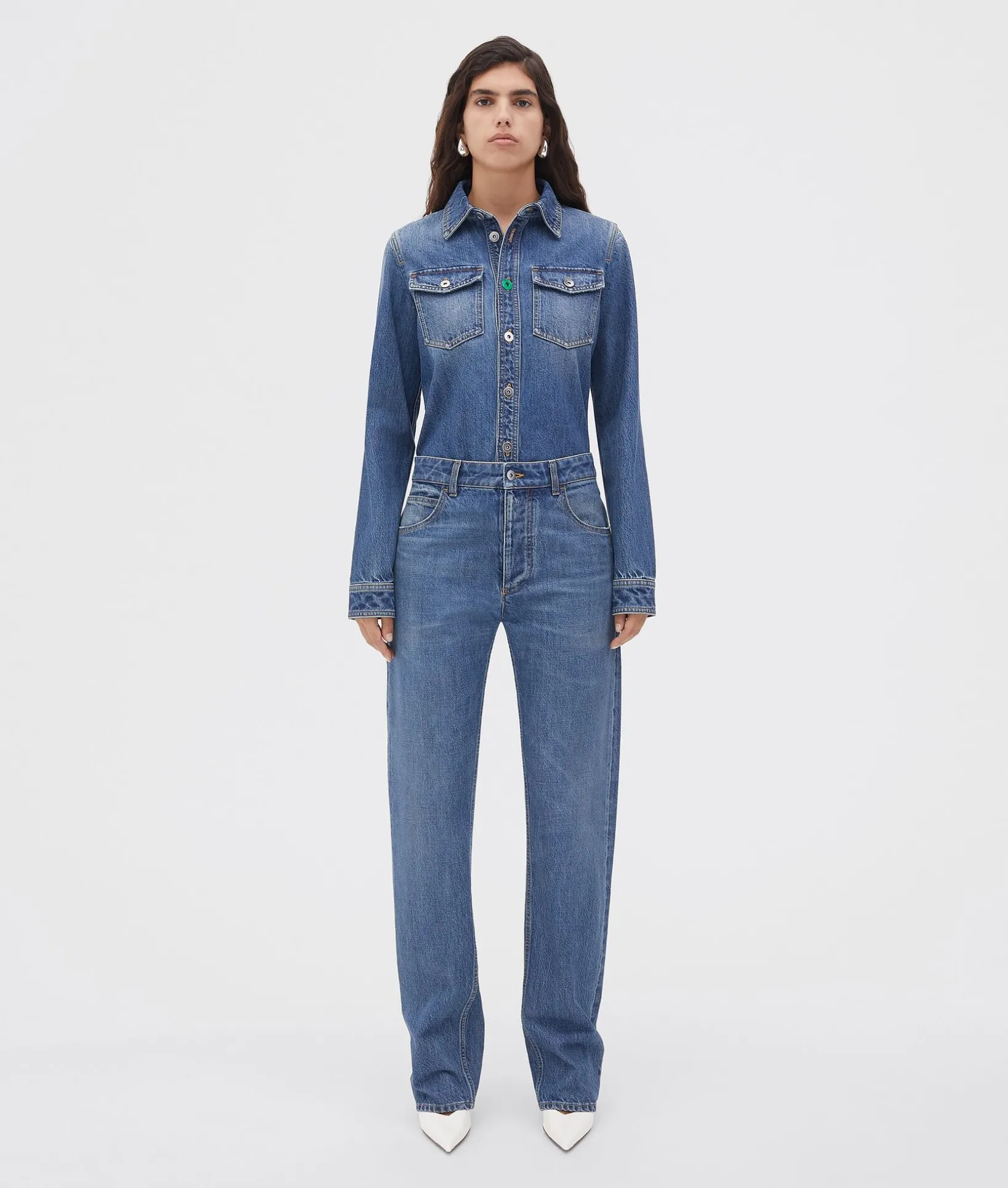 • Medium washed straight denim
