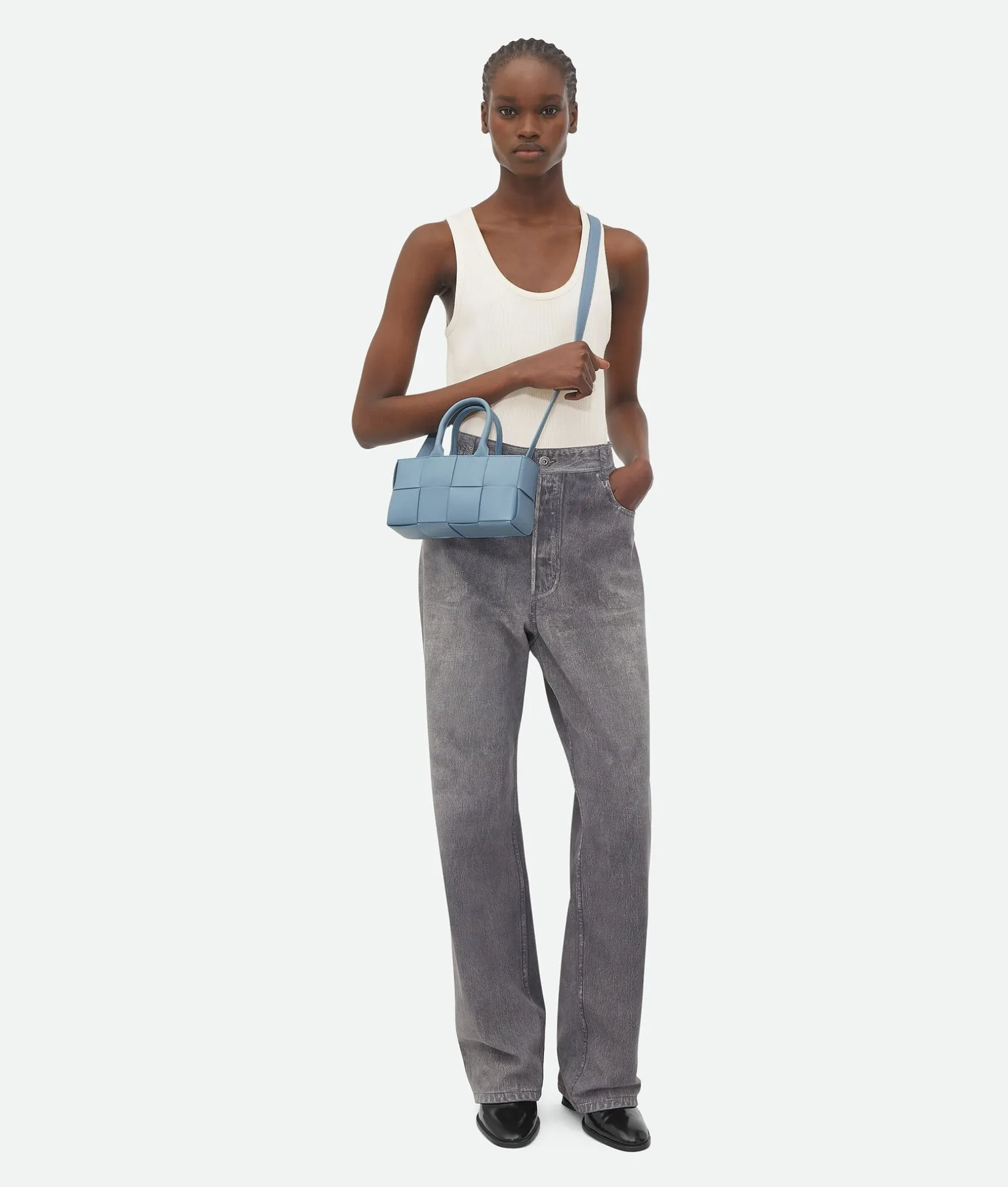 • Mini East-West Intreccio leather tote bag with detachable strap