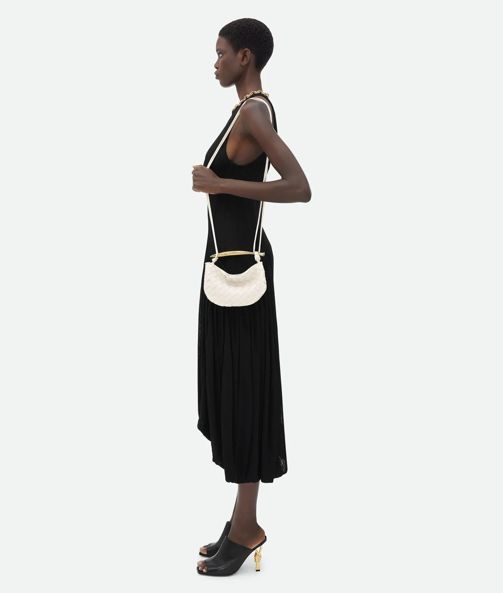 • Mini Intrecciato leather cross-body bag with metallic top handle