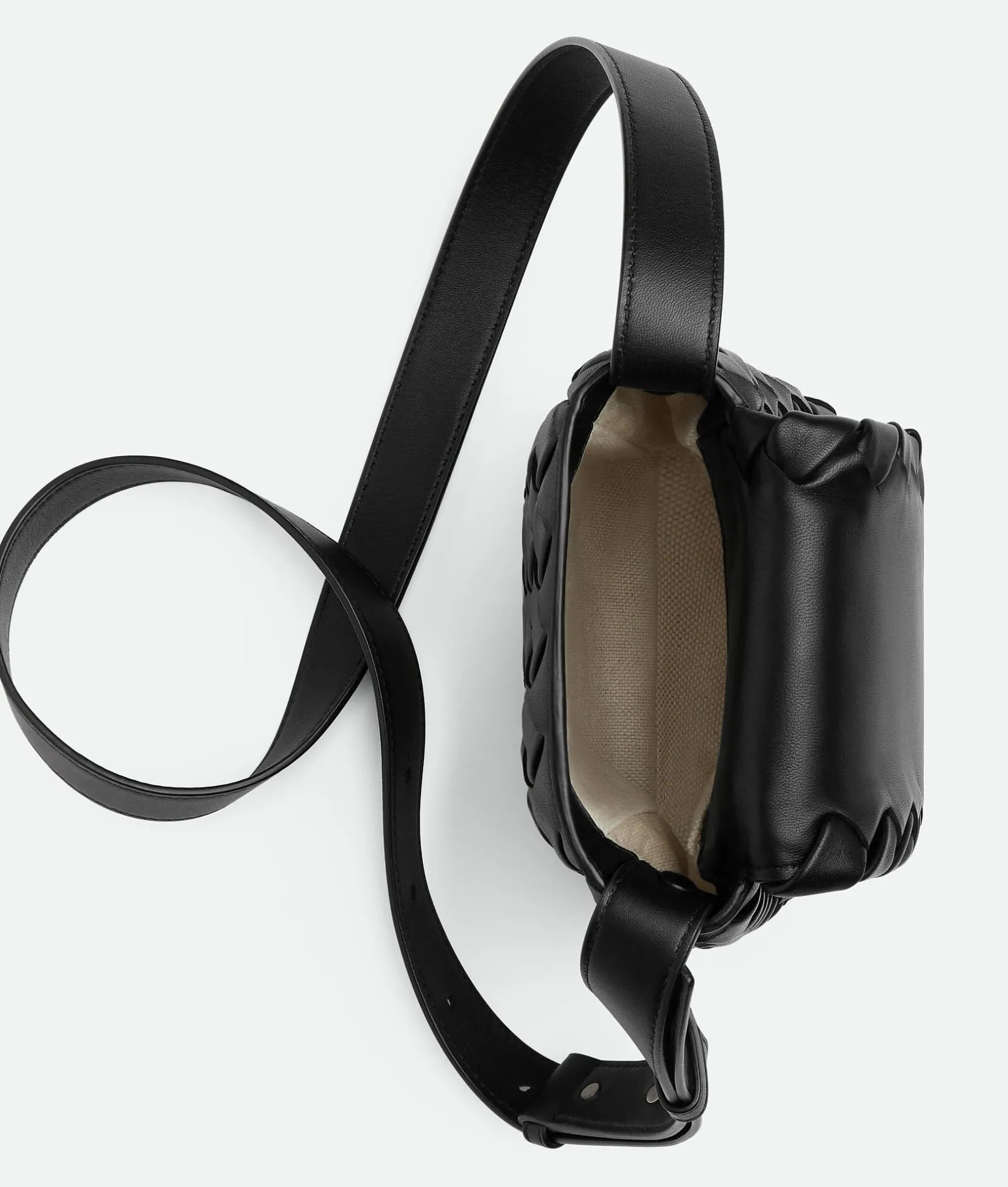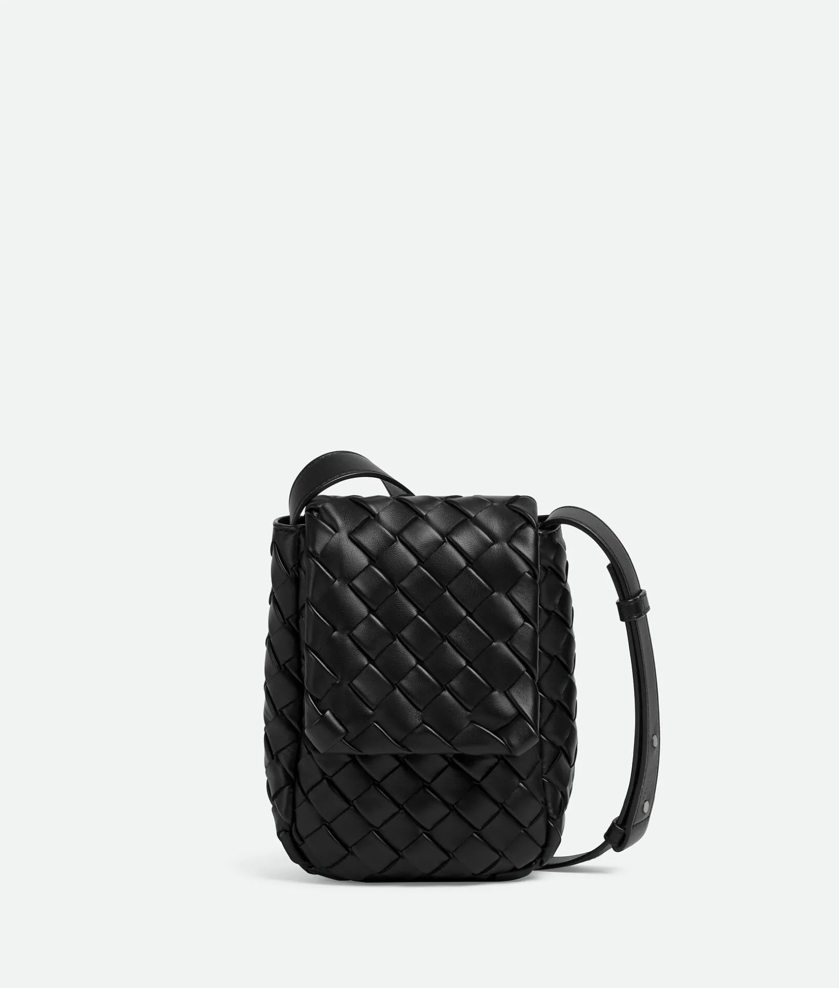• Mini vertical padded Intrecciato leather cross-body bag with adjustable strap