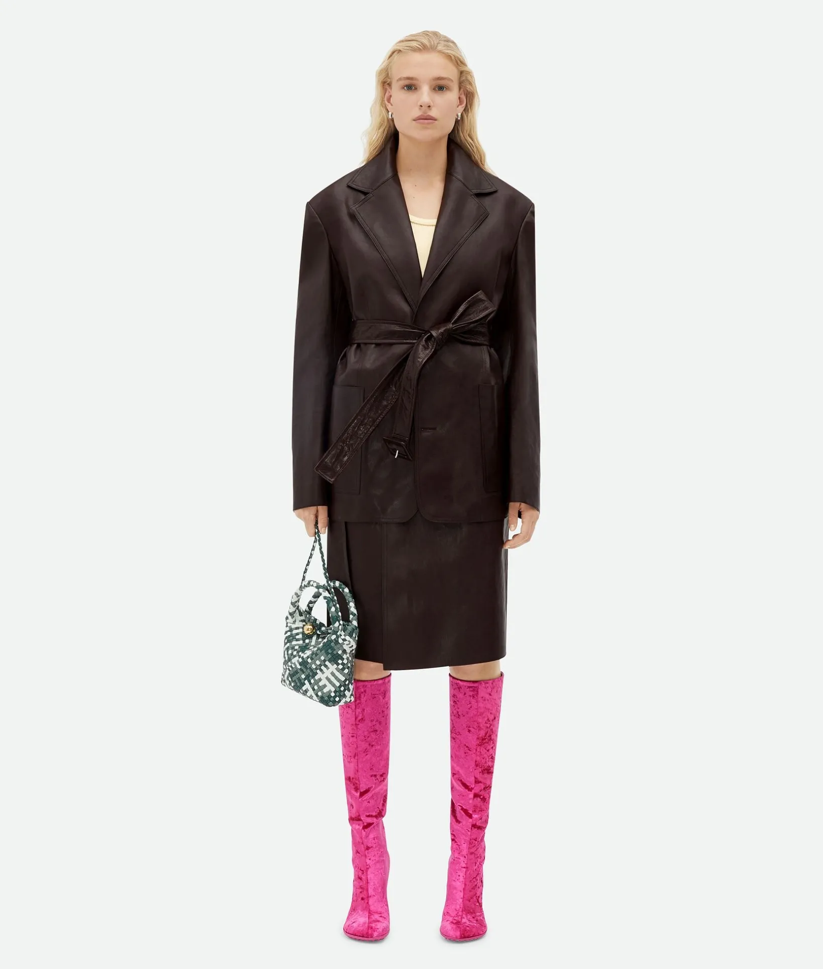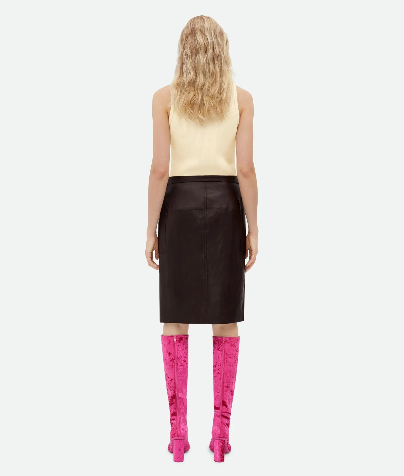 • Nappa leather wrapped midi skirt
