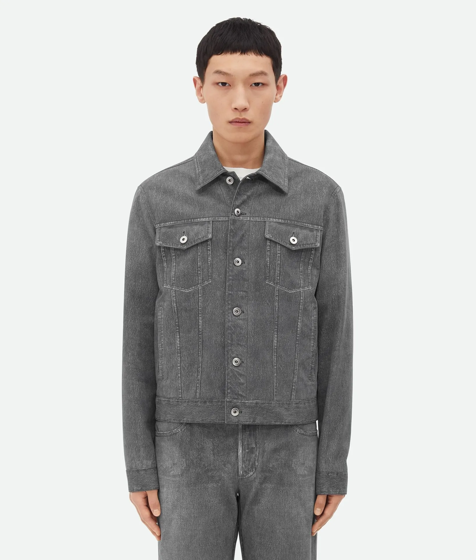 • Printed leather denim jacket