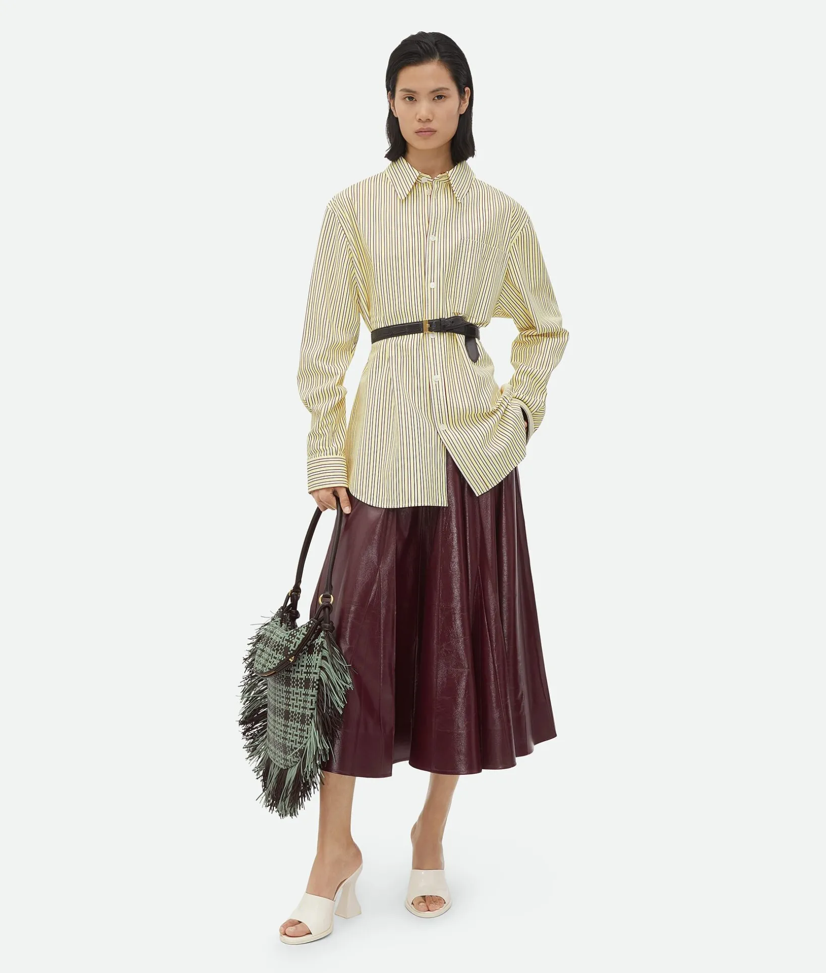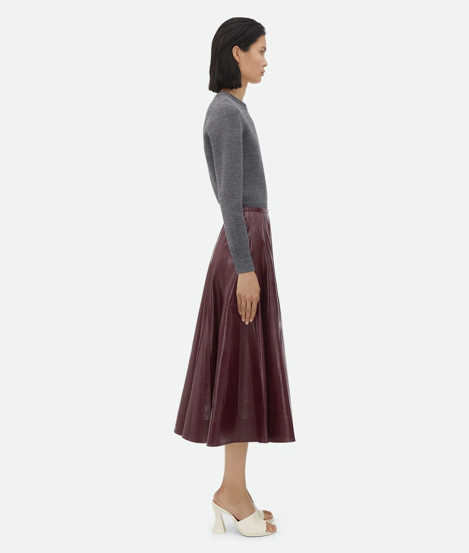 • Shiny leather A-line midi skirt