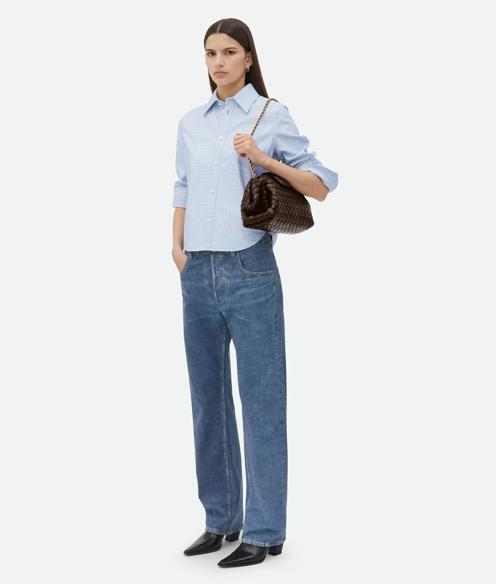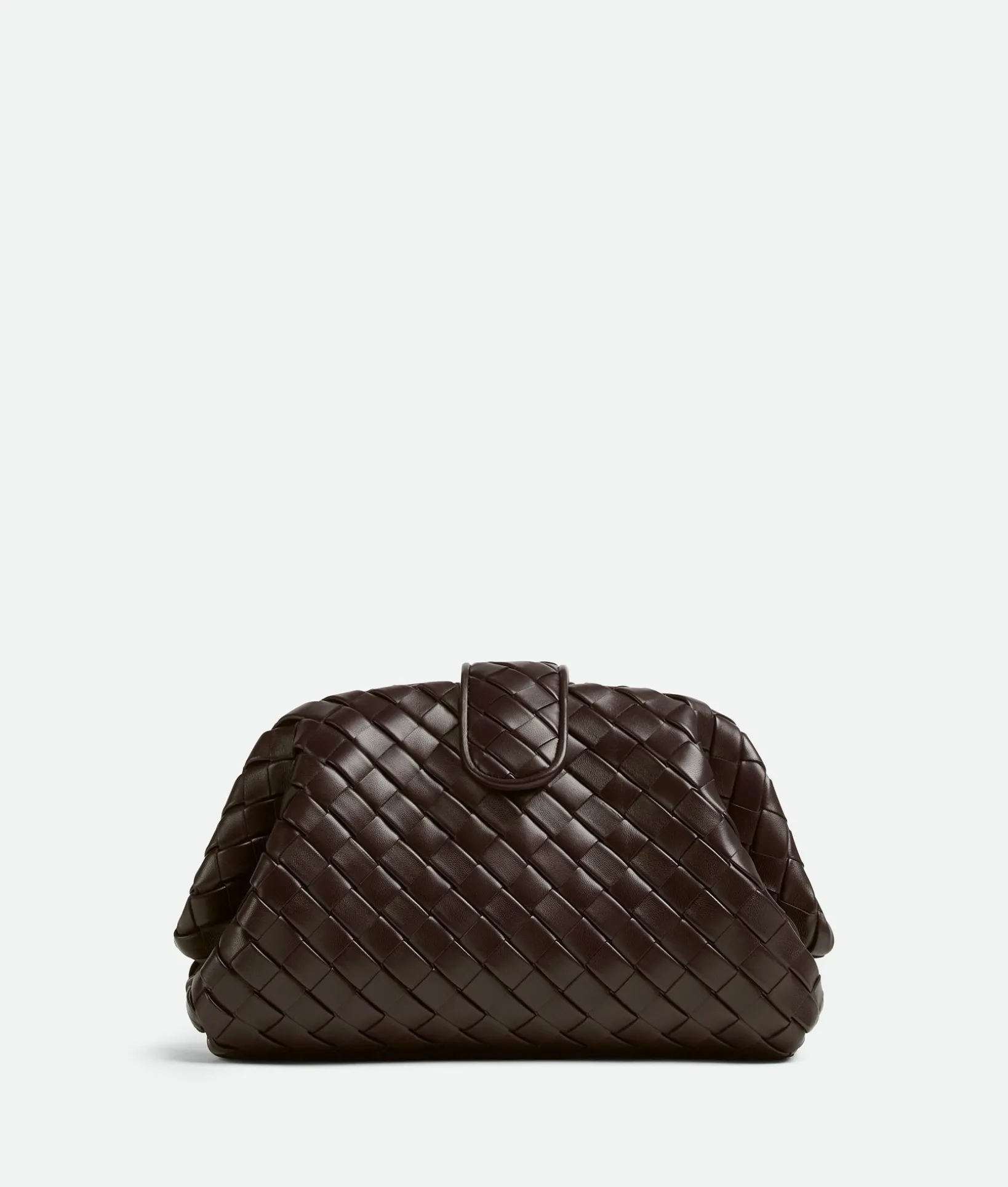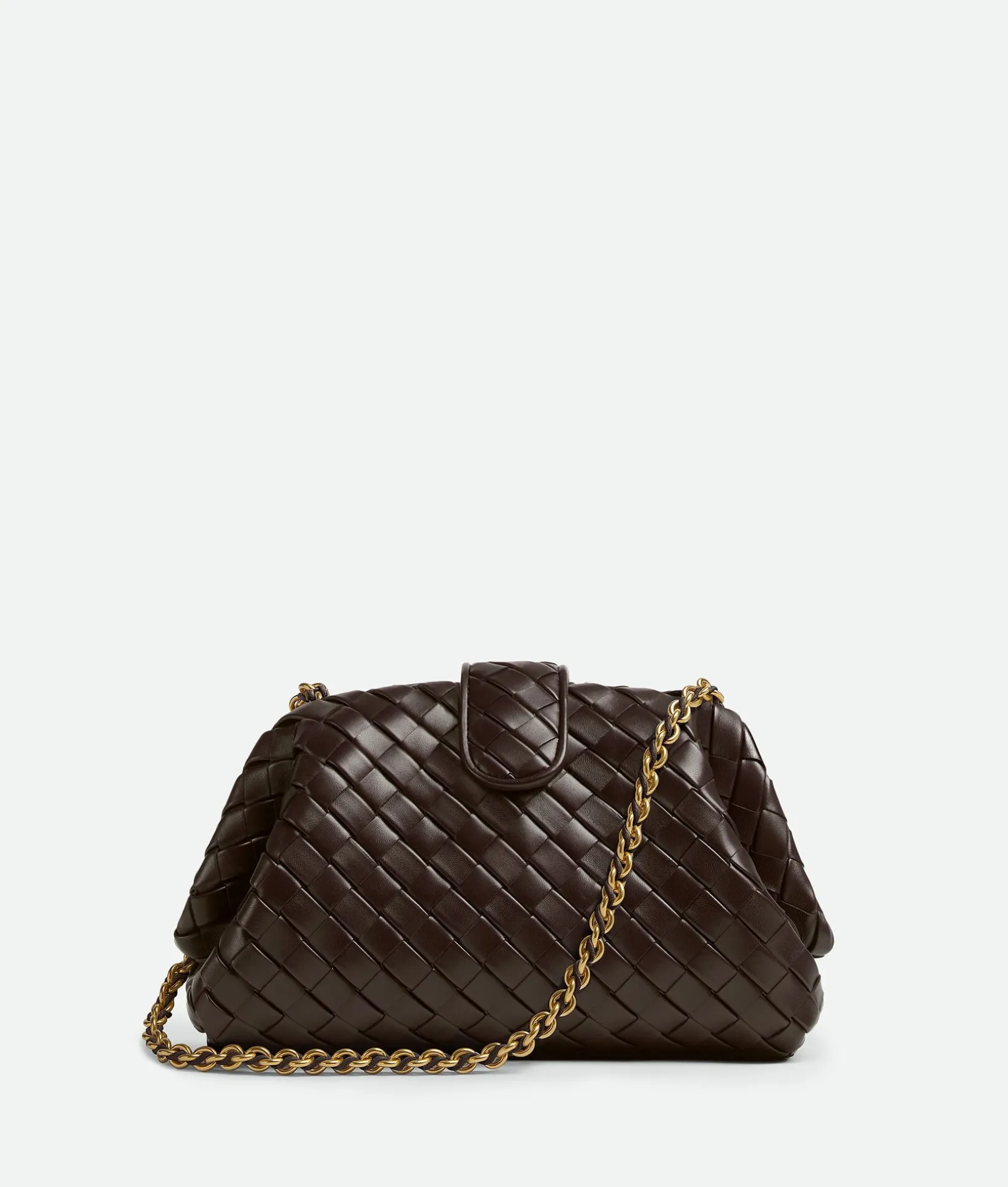 • Padded Intrecciato leather teen clutch with leather braided metal chain