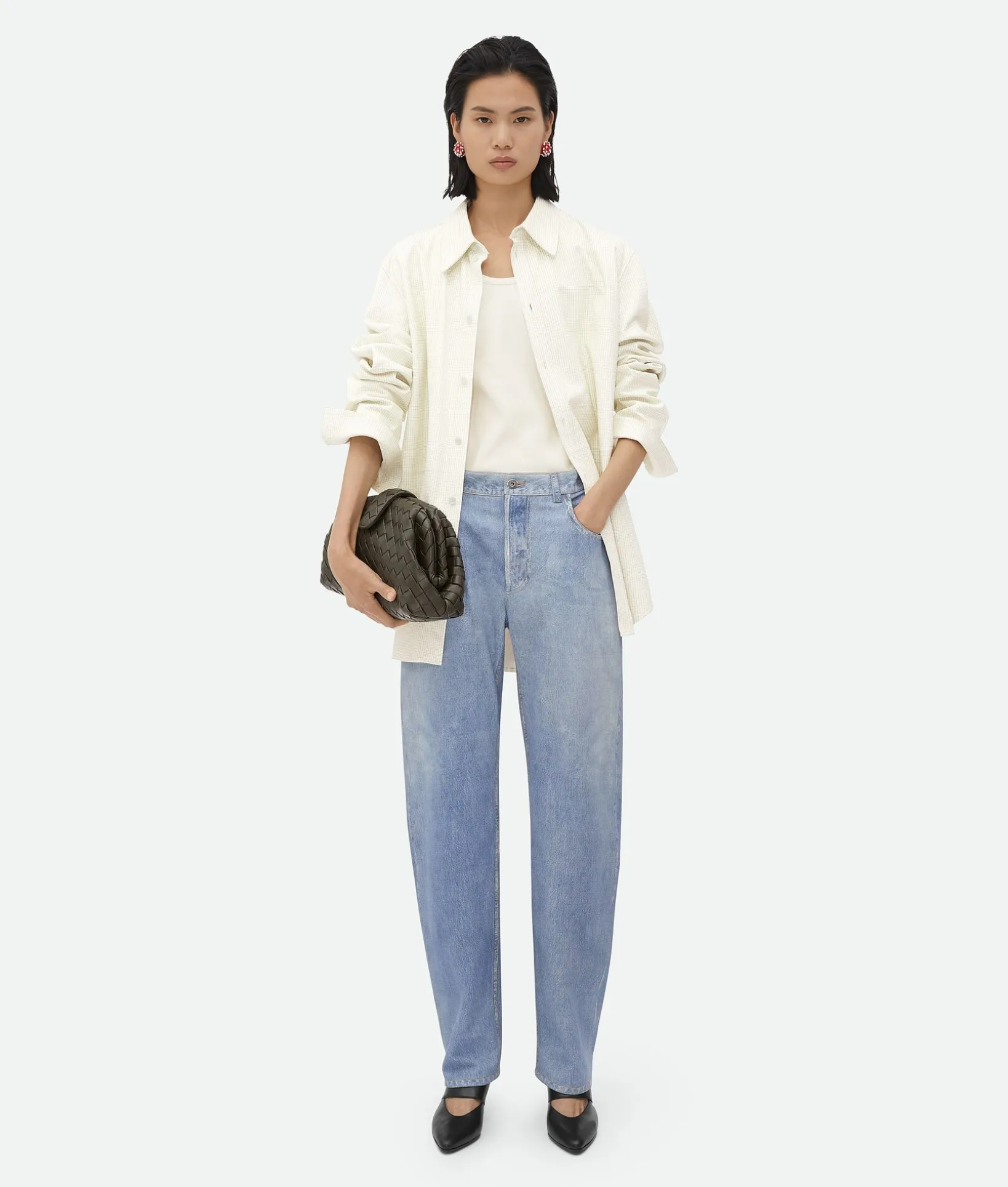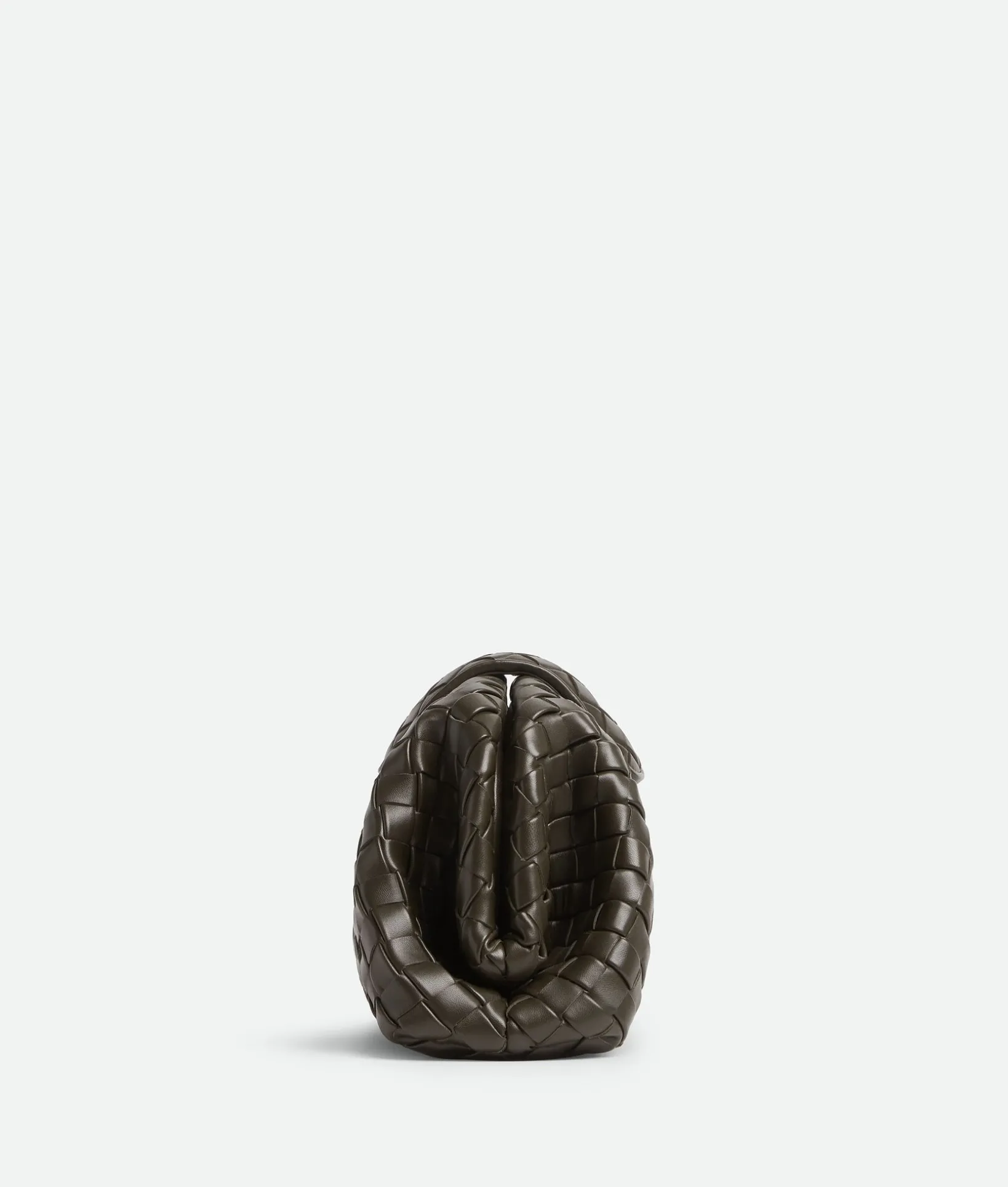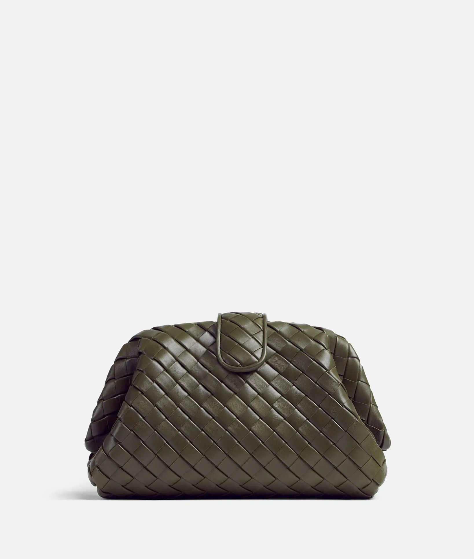 • Padded Intrecciato leather teen clutch with leather braided metal chain