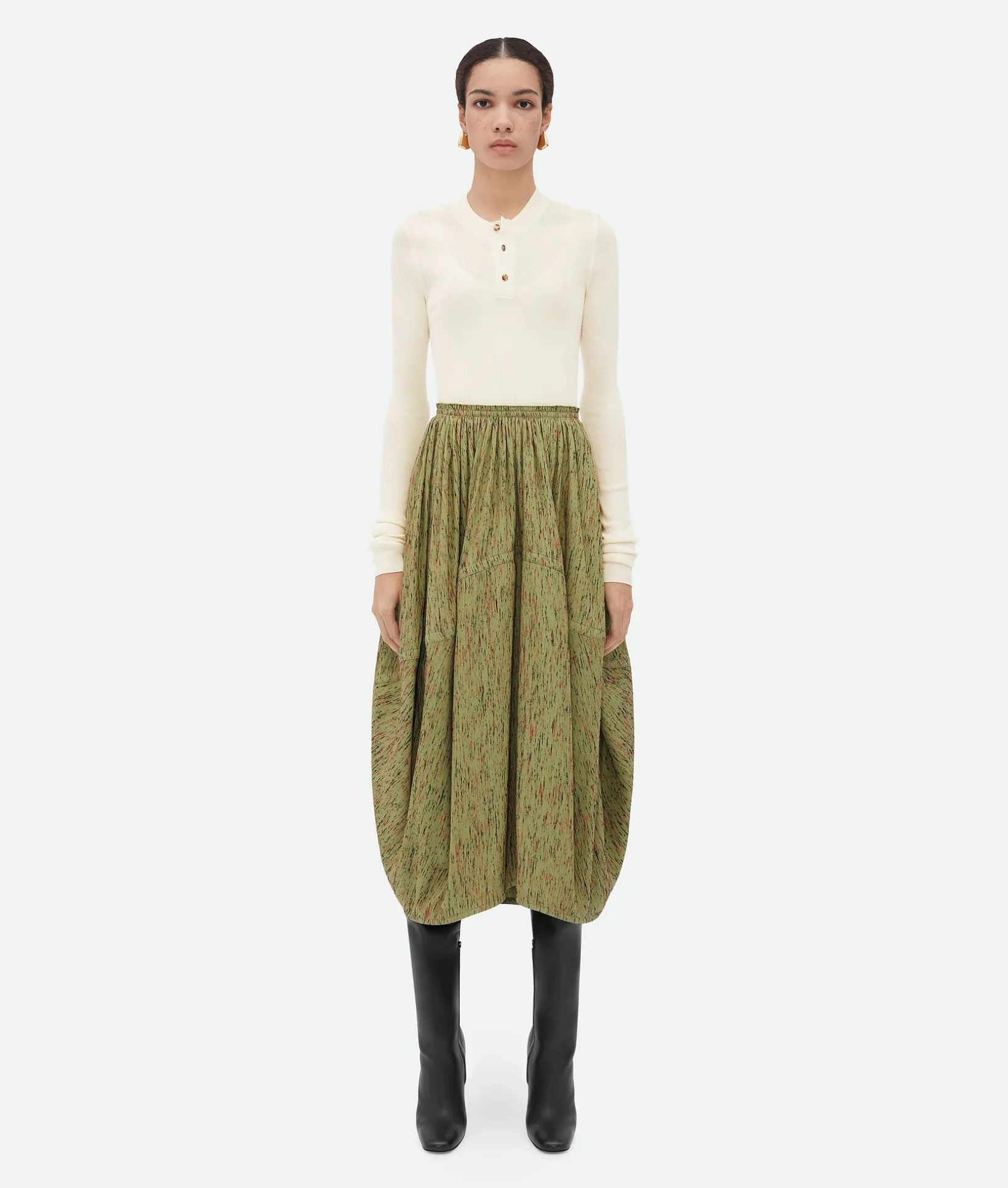 • Textured viscose stripe balloon midi skirt