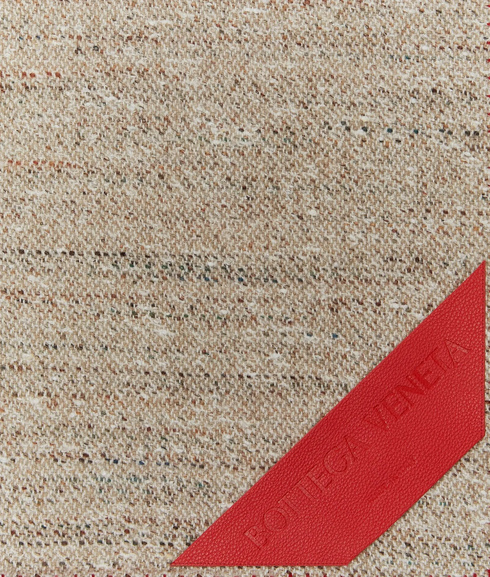 • Blanket in merino wool with calfskin leather patch and edge-stitching details.