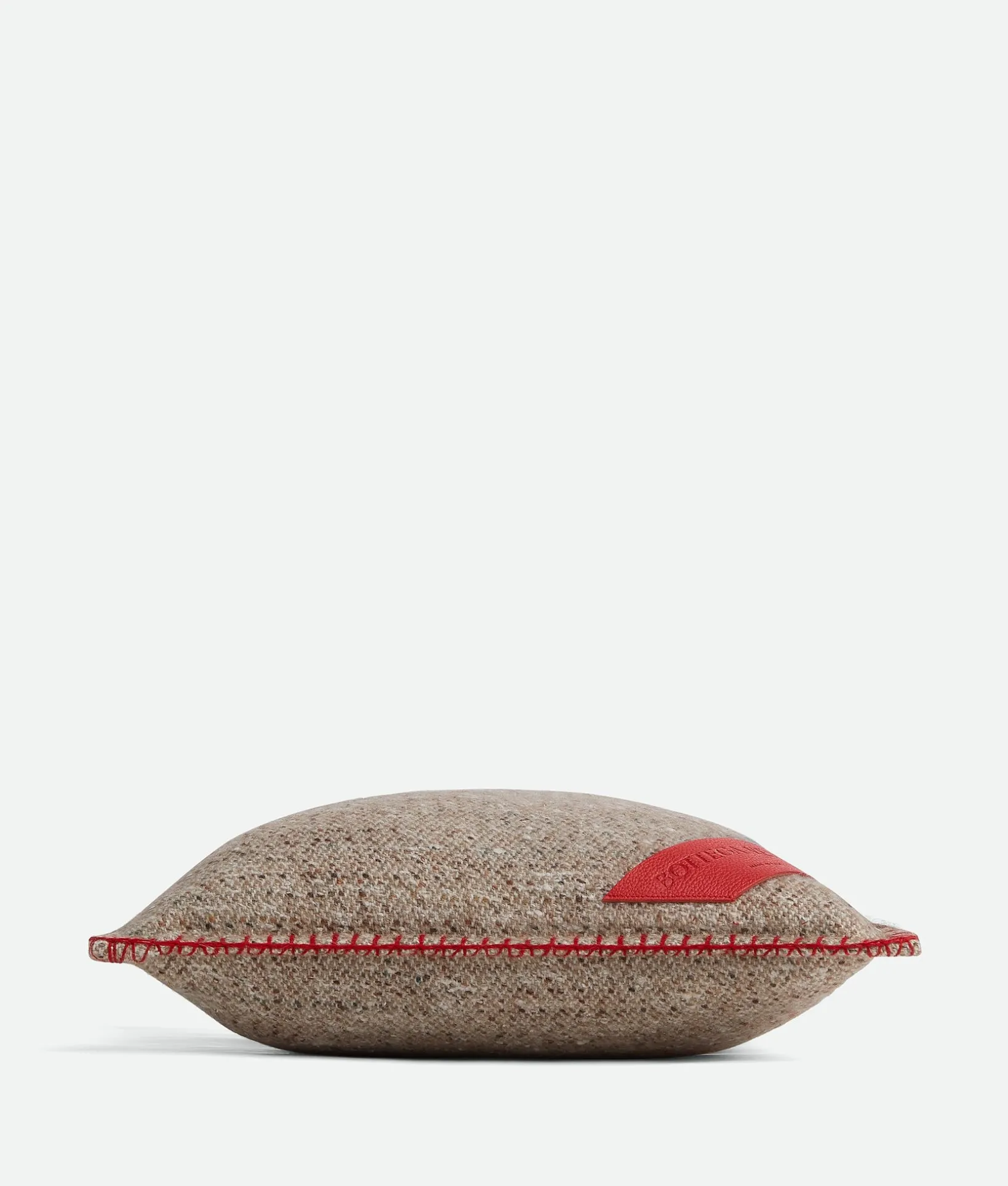 • Cushion in merino wool with calfskin leather patch and edge-stitching details.
