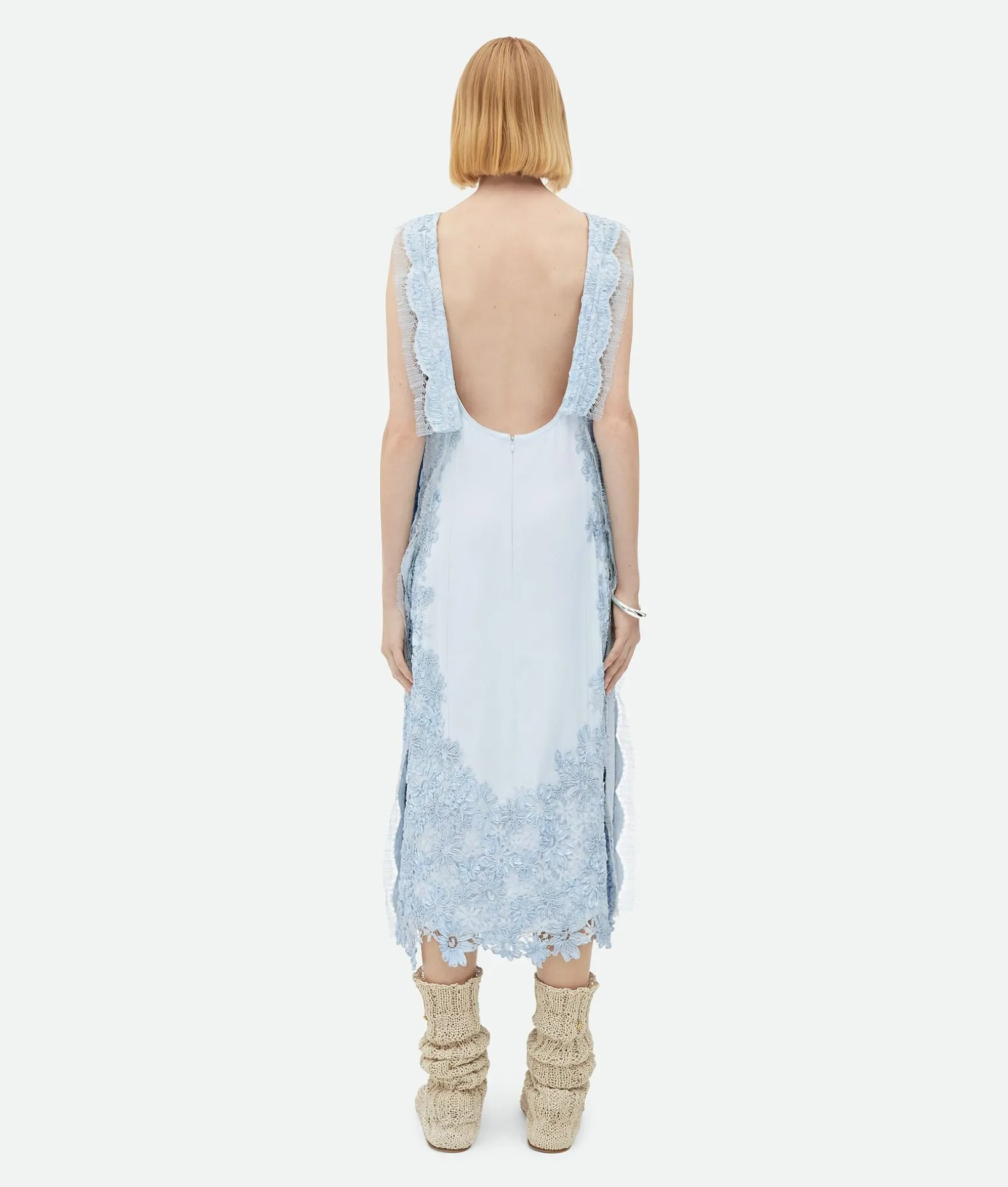 • Viscose twill dress with lace embroidery