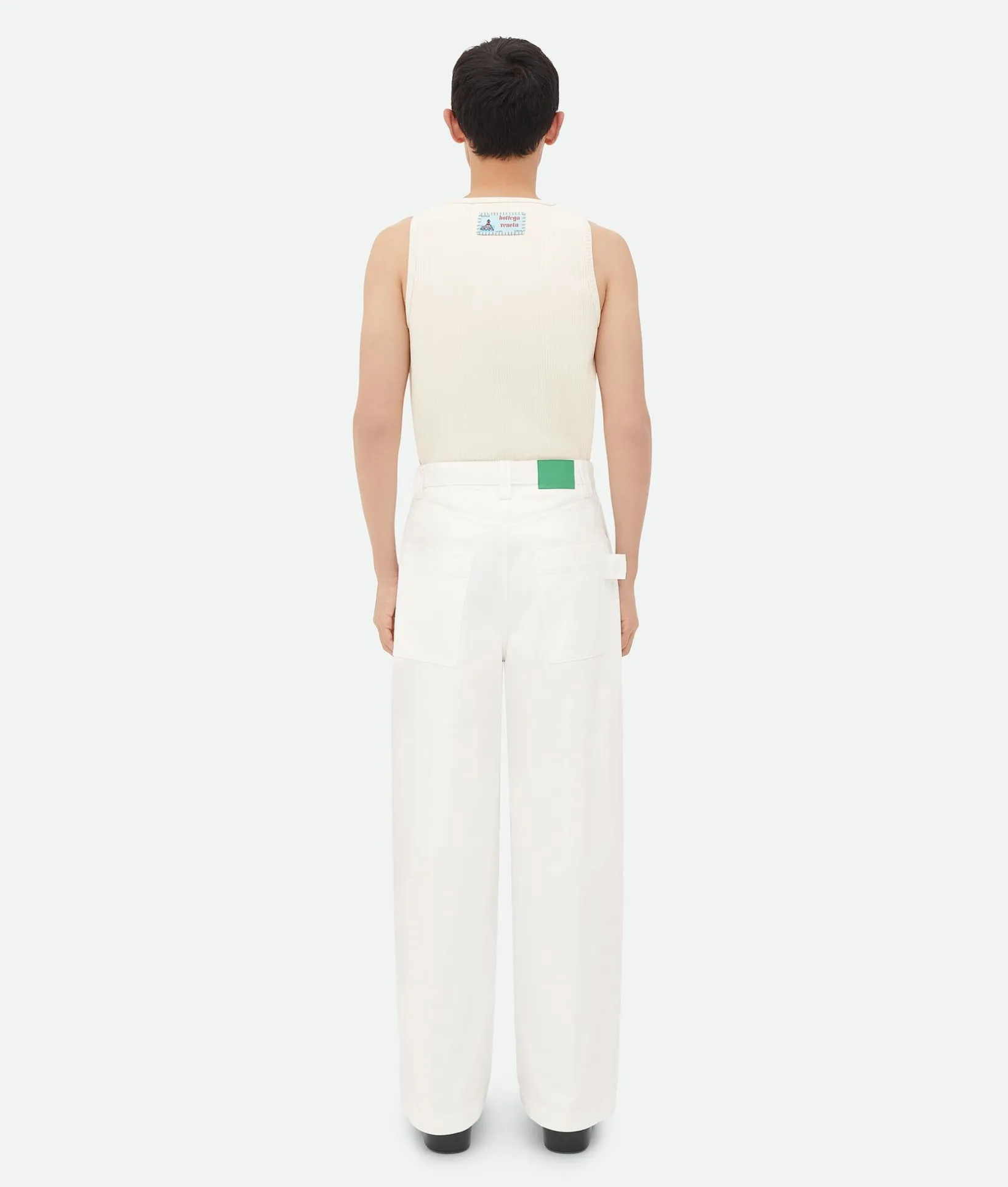 • Soft white pleated denim trousers
