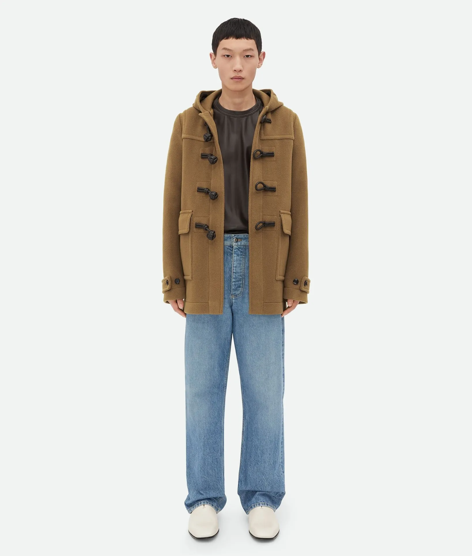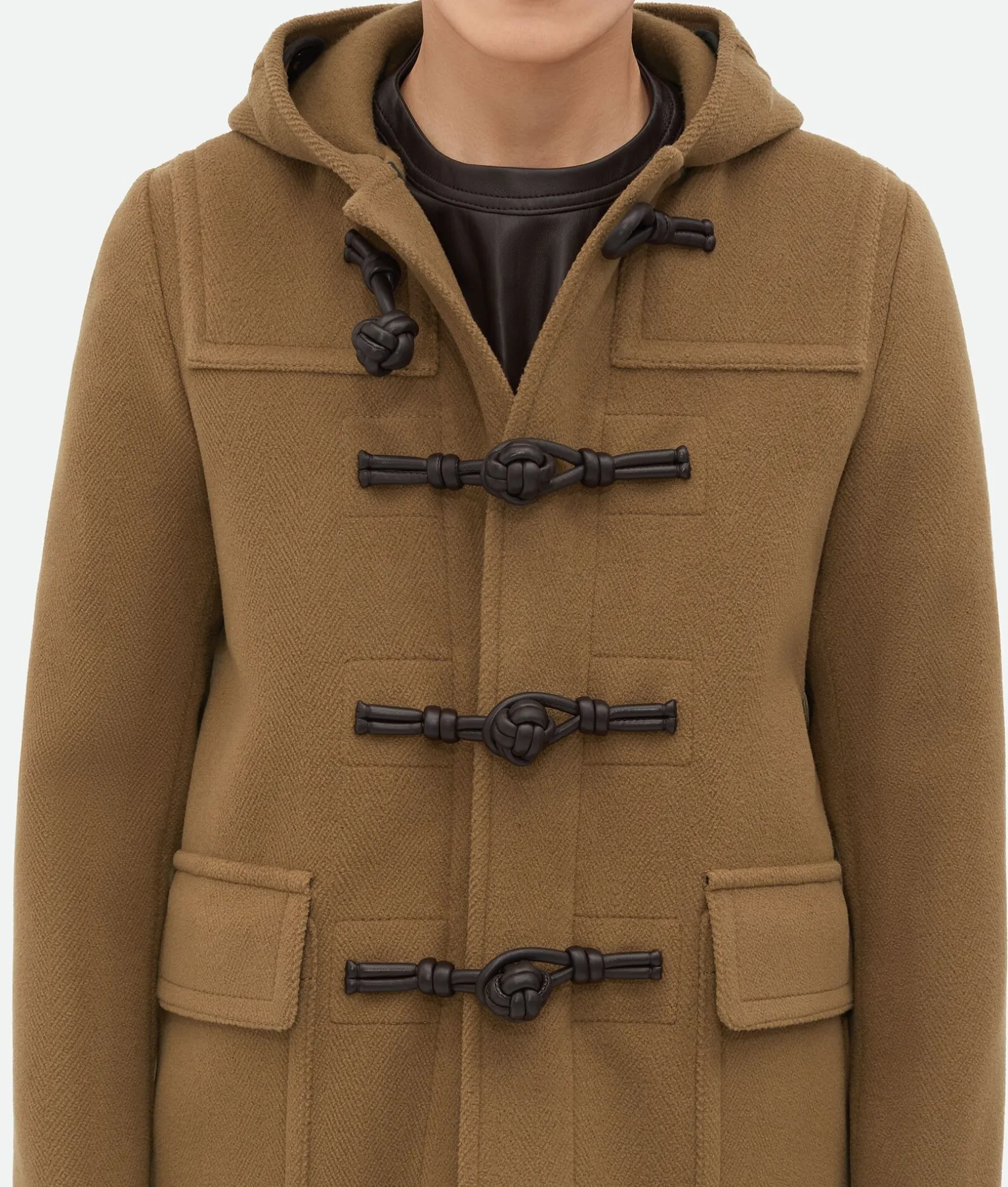 • Hooded wool duffle coat